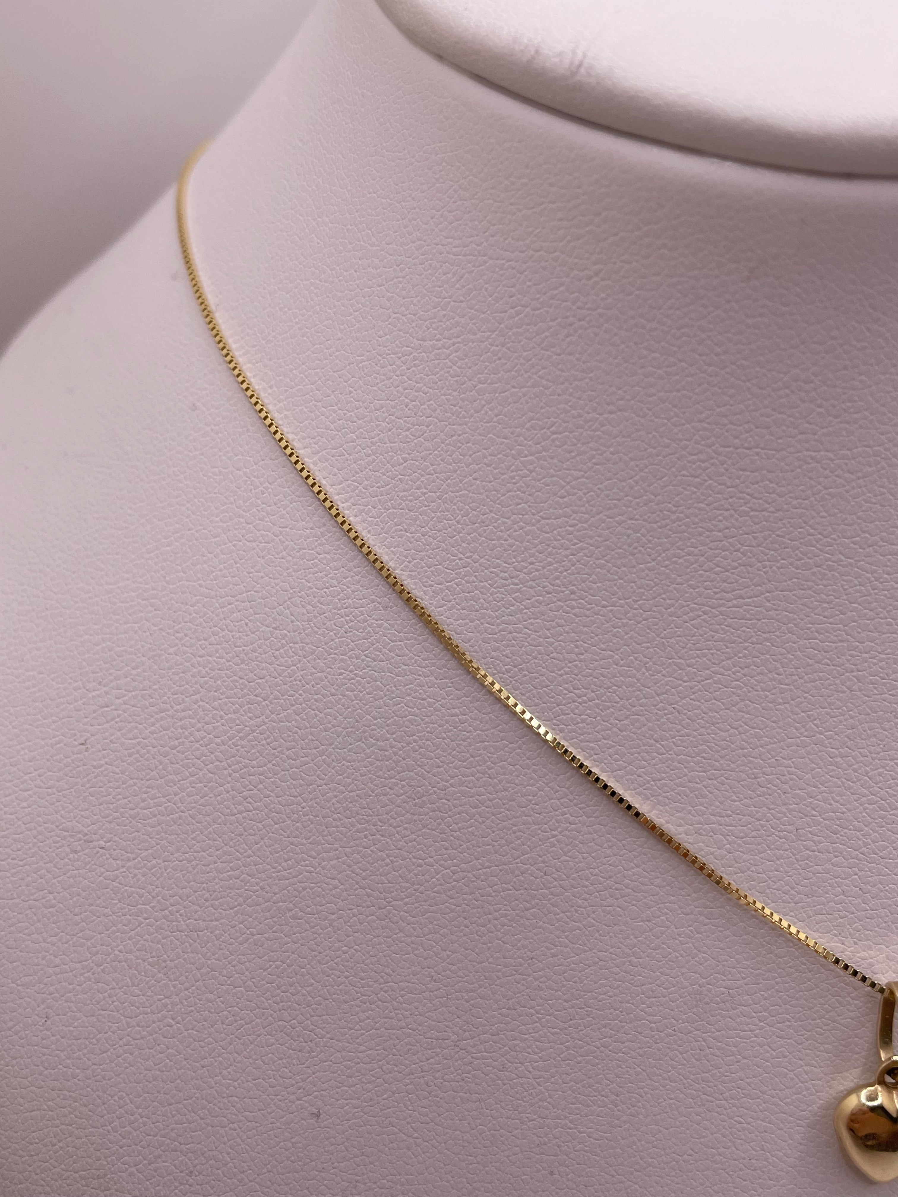 14K Gold Solid 3D Heart Pendant with a height of 7mm and a width of 8mm