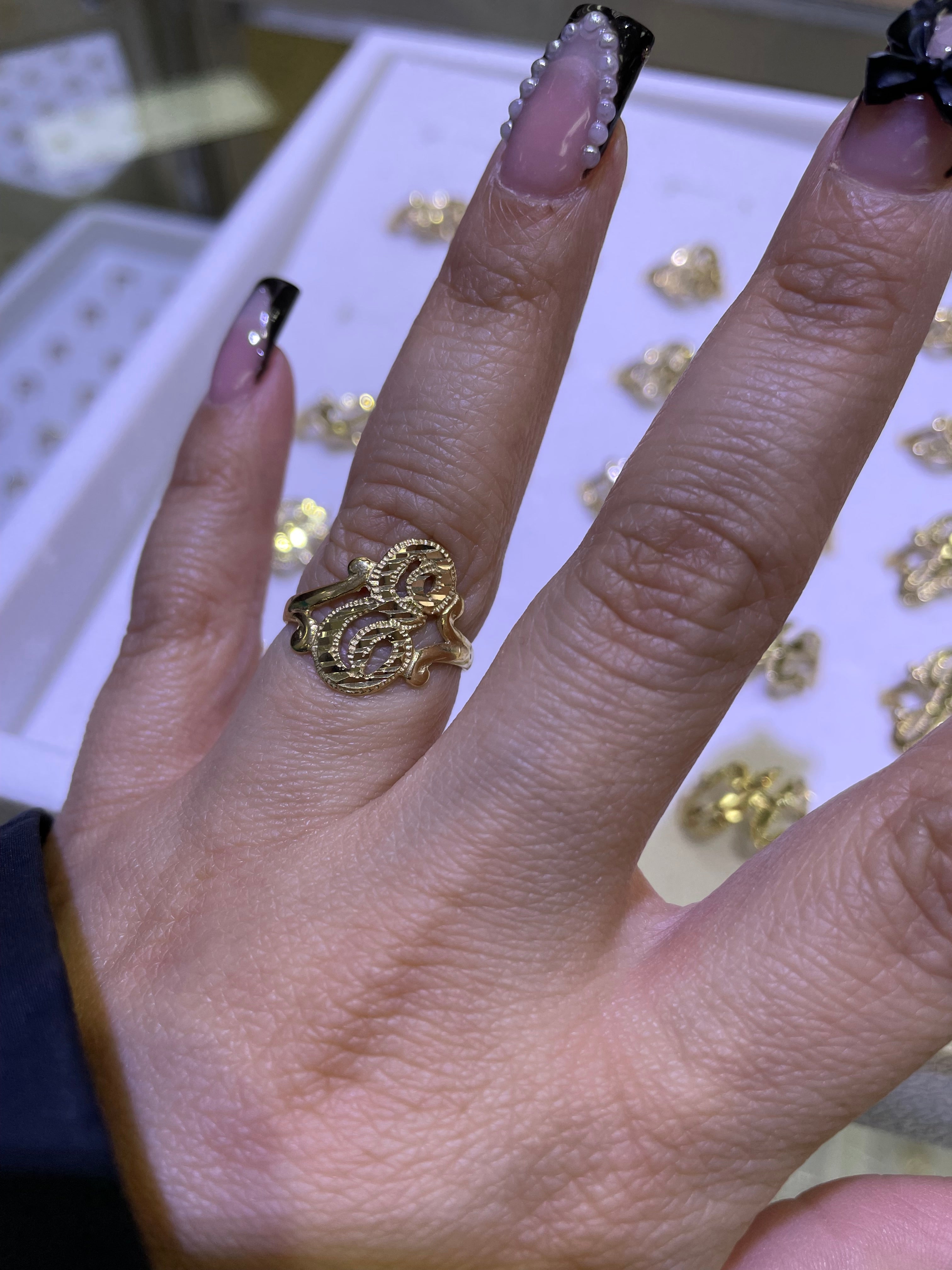 Celebrate your unique style with this stunning 14K gold cursive initial ring. Featuring a capital cursive initial adorned with a beautiful diamond-cut design, this elegant piece adds a personal and stylish touch to your jewelry collection.