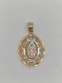 14K Gold Three Tone Virgencita Oval Cut-Out Pendant