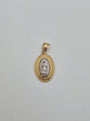 14K Gold Two-Tone Virgencita Oval Pendant (Greek Border)