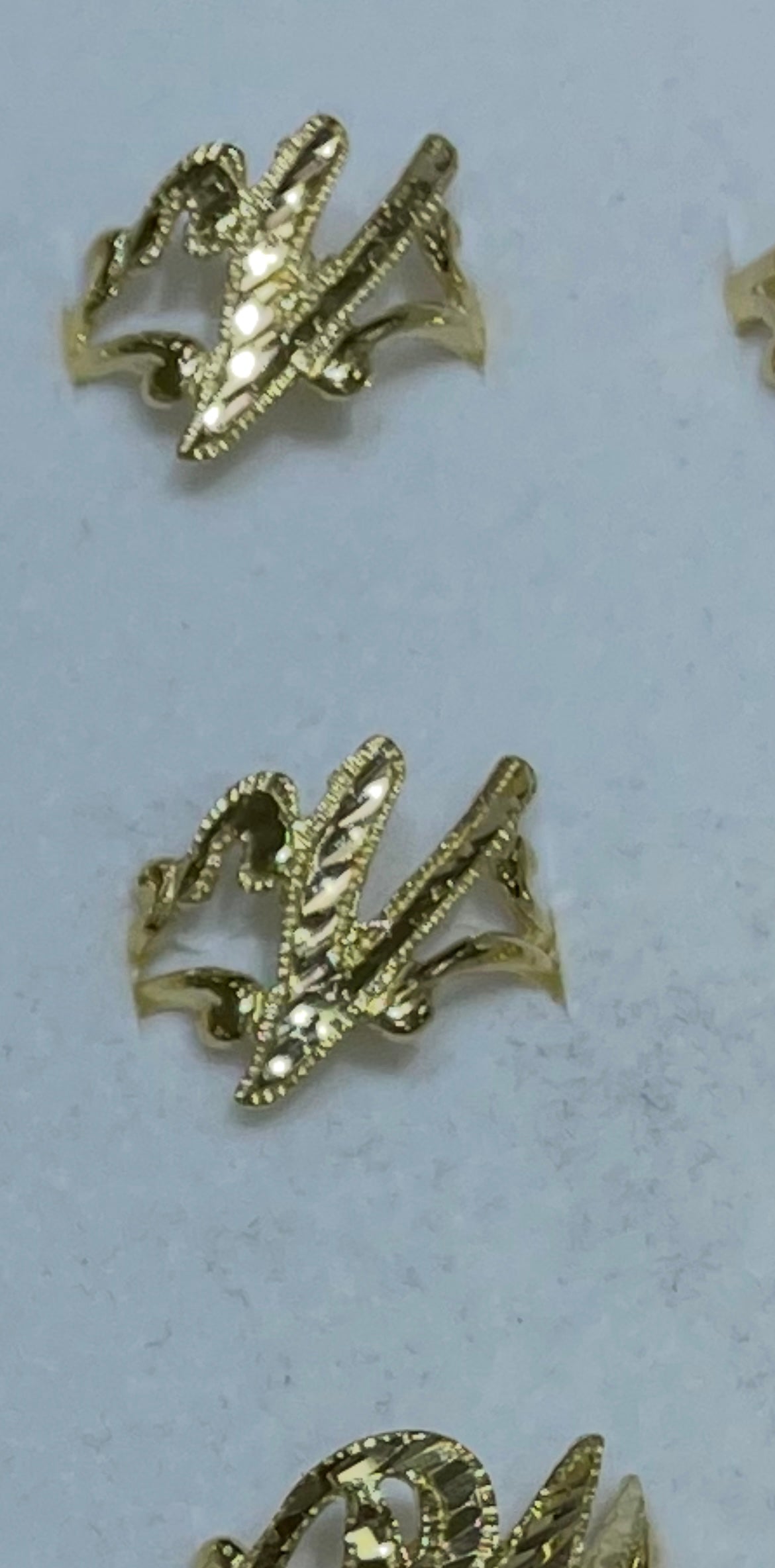 14k gold “v” cursive initial ring