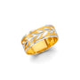 This bold 14K gold wedding band features a beautiful brushed center with a flowing diamond-cut leaf design that wraps gracefully around the band. With a polished finish and wide 8mm silhouette, it’s perfect for the woman who loves symbolic details with elegant impact.