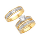 - Presentamos un impresionante conjunto de trío de compromiso para bodas de tres colores de 14k, que presenta alianzas adornadas con piedras de circonita cúbica y un anillo de compromiso con una piedra de circonita cúbica central para un diseño elegante y atemporal.