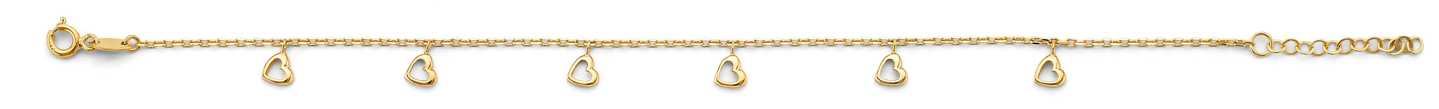 Delicate open hearts dance along this dreamy chain, catching the light with every step or gesture. Whether worn as a bracelet or an anklet, this piece is crafted in real 14K gold and brings the perfect flirty, feminine touch to any look. Choose your vibe — wrist or ankle — and let the heart charms do the talking. 💛