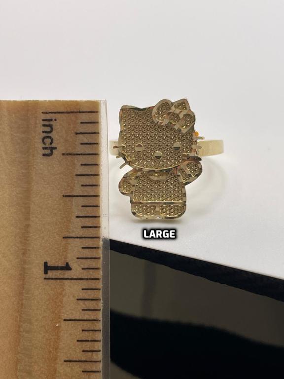 This adorable 10K gold Hello Kitty ring features her full body with one hand raised in a playful wave—the perfect mix of charm and nostalgia. Available in two sizes (small and large), you can choose the look that fits your style best.