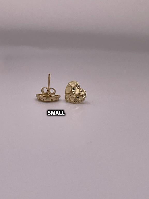 10K Gold Nugget Heart Stud Earrings – Available in 4 Sizes