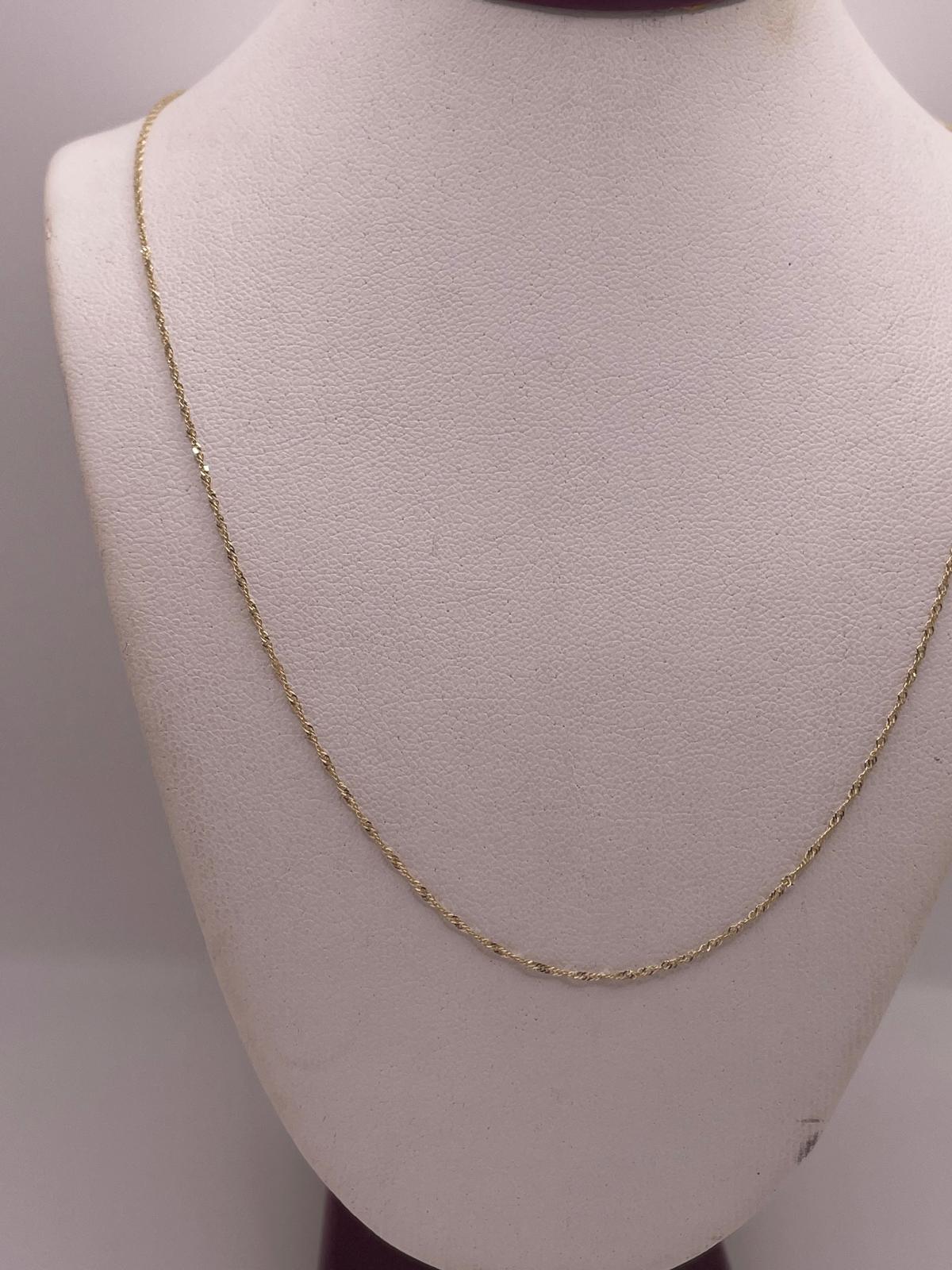 This 14K gold Singapore necklace is the perfect mix of delicate beauty and timeless elegance. Featuring a dainty 0.9mm twisted design, it catches the light beautifully, creating a stunning shine with every movement. Whether you're treating yourself or gifting someone special, this necklace is a classic addition to any jewelry collection.