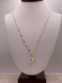 This 14K gold 1.3mm Singapore chain necklace features a stunning stamp bar and twisted design that shines beautifully in the light. Its delicate and classy style adds a timeless elegance to any outfit, making it perfect for everyday wear or special occasions. Available in 16", 18", 20", and 22" lengths, this versatile necklace pairs effortlessly with pendants or looks stunning on its own.
