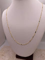 14k gold 1.3mm singapore stamp bar chain necklace (0480)