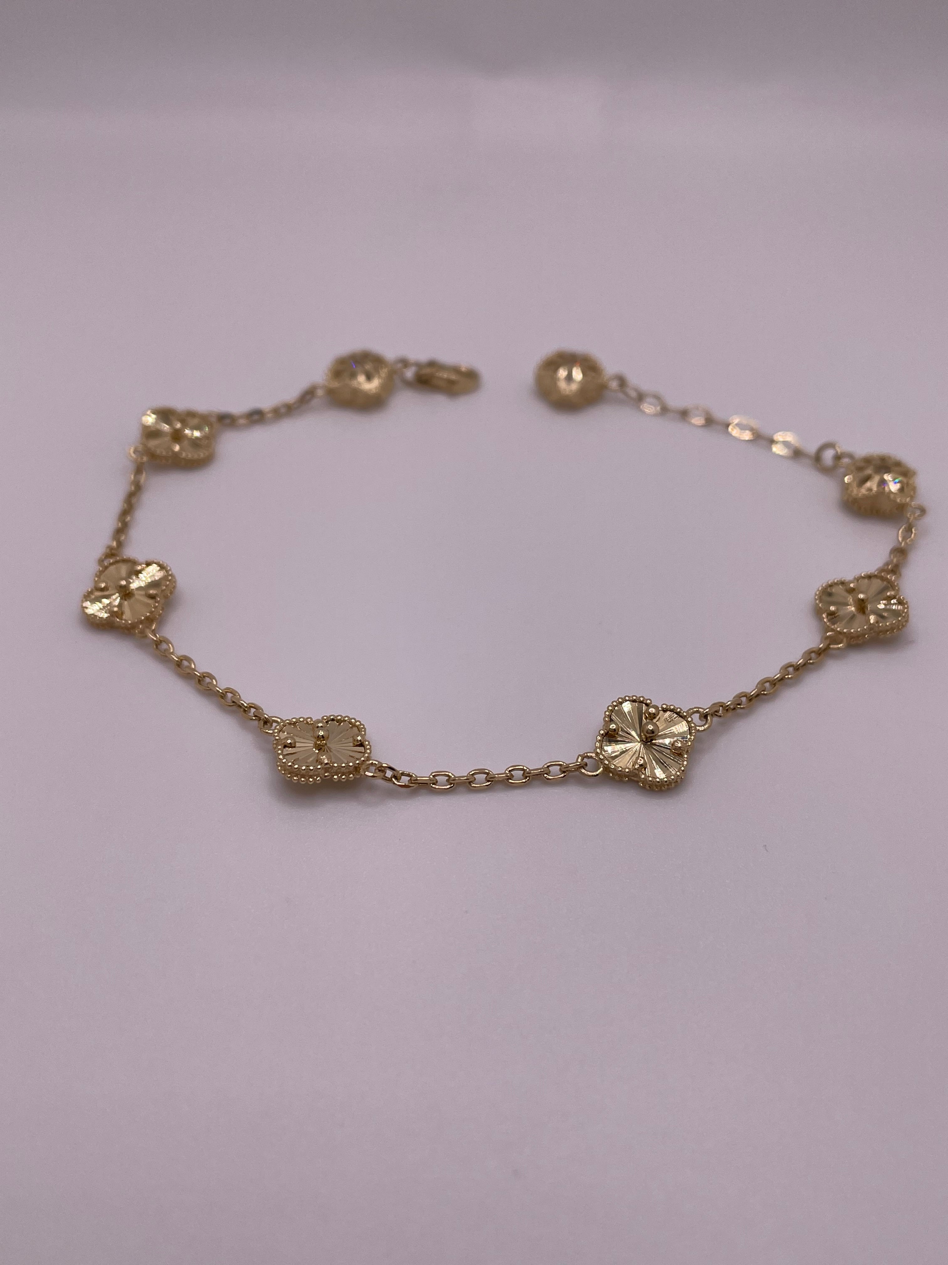 ✨ 5 Motif Bracelet (7–9 inches) – Adjustable for the perfect fit, with smaller framed clovers that create a refined yet classic look.