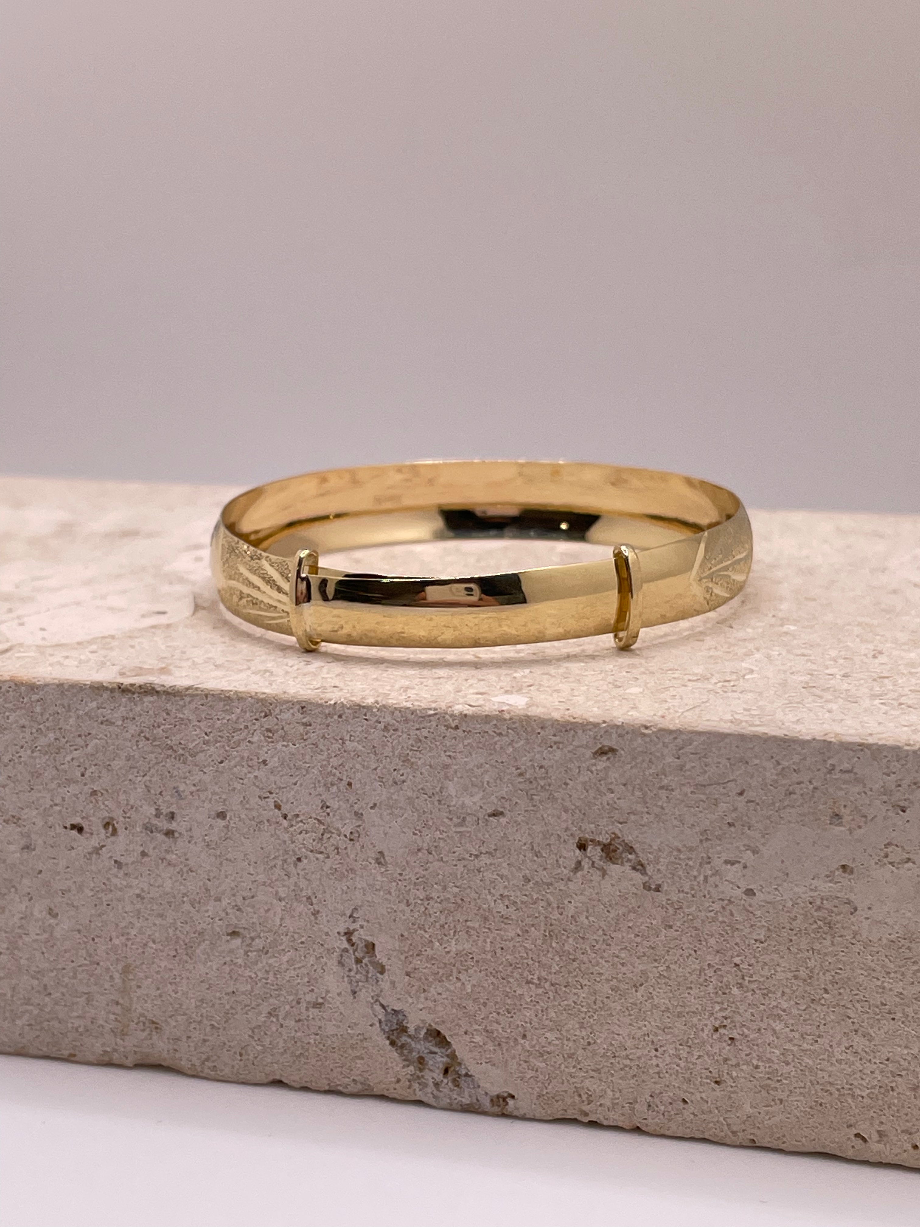 With a width of 8 mm, this bangle is both dainty and eye-catching, making it a meaningful keepsake for special occasions like baptisms, birthdays, or welcoming a new baby.