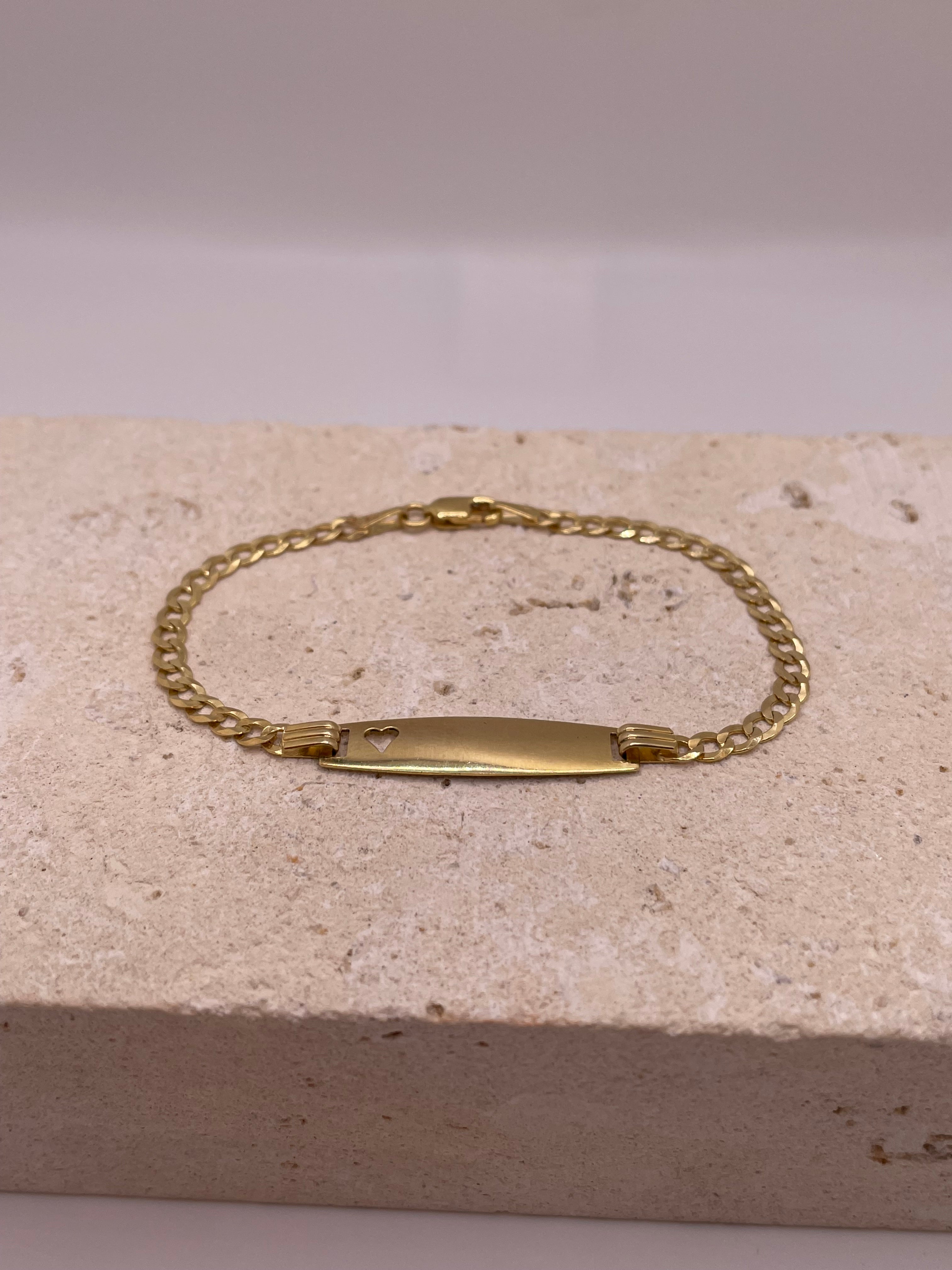 14k Gold Baby ID Cuban Bracelet with Heart Cut-Out