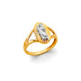 This 14K gold baby ring features a beautiful round diamond-cut design with a white gold San Judas centerpiece. The two-tone finish adds a stunning contrast, making it a meaningful and eye-catching piece — perfect as a baby ring or a women’s pinky ring.