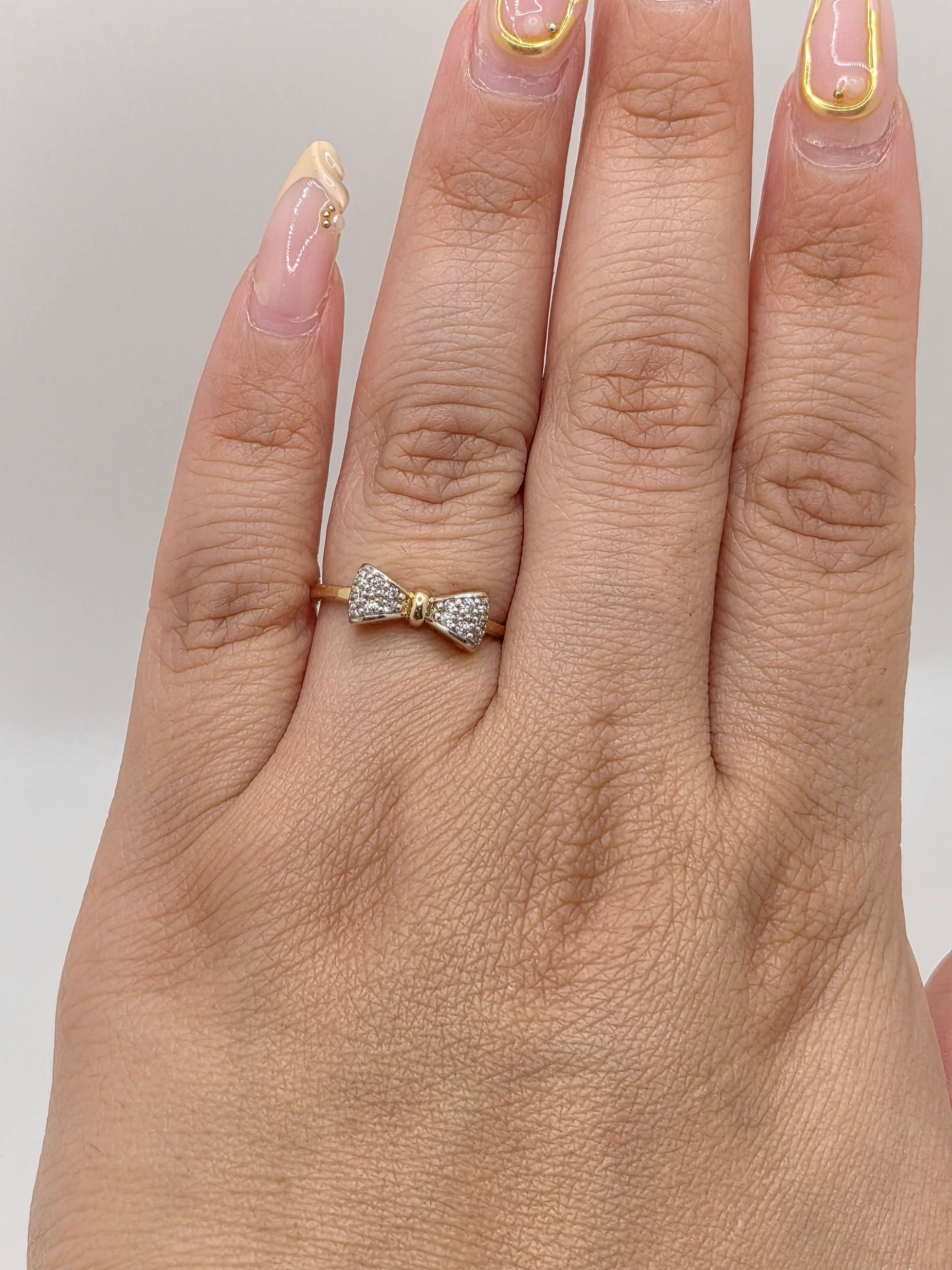 14K Gold Bow Ring with CZ Accents