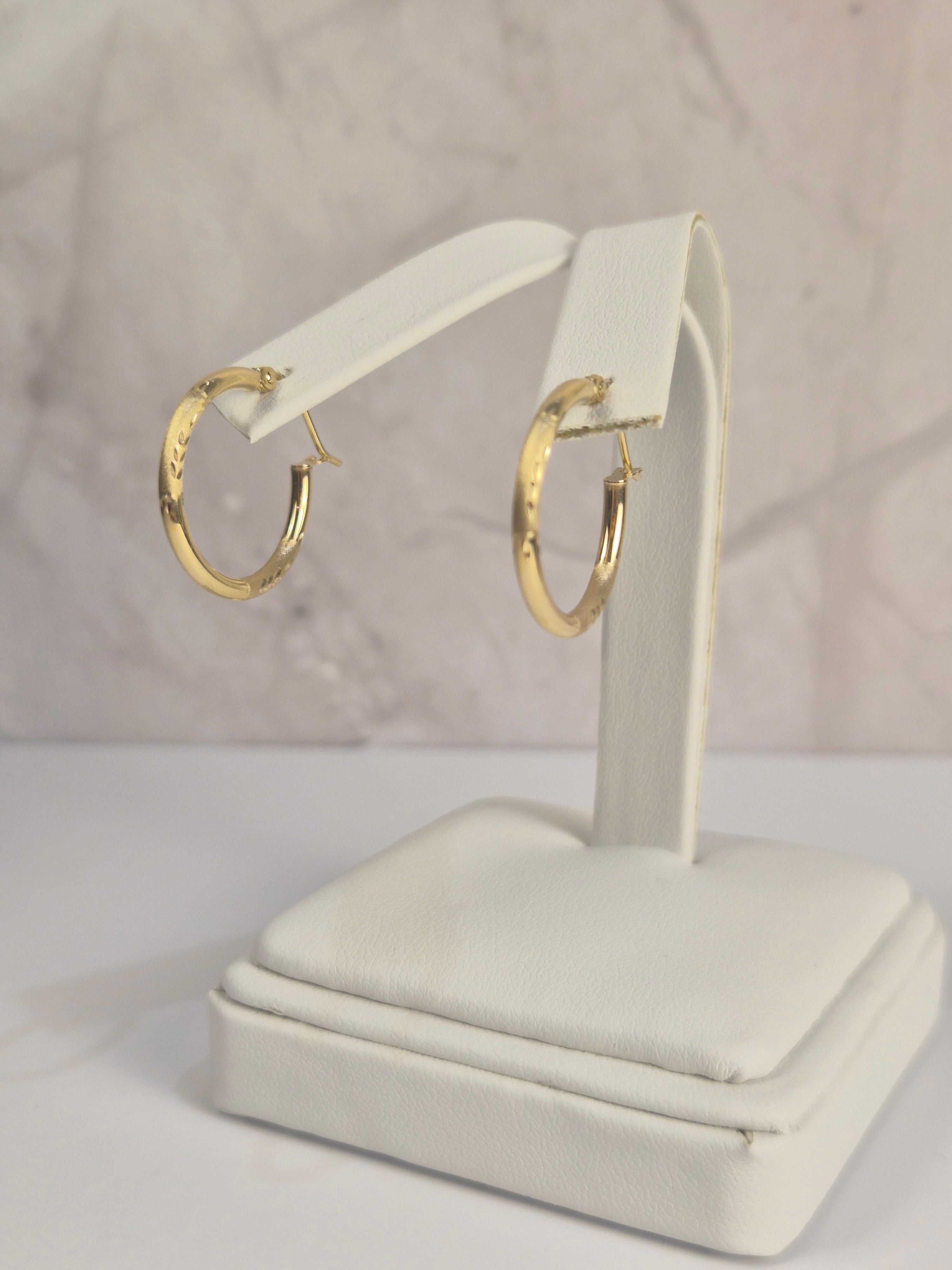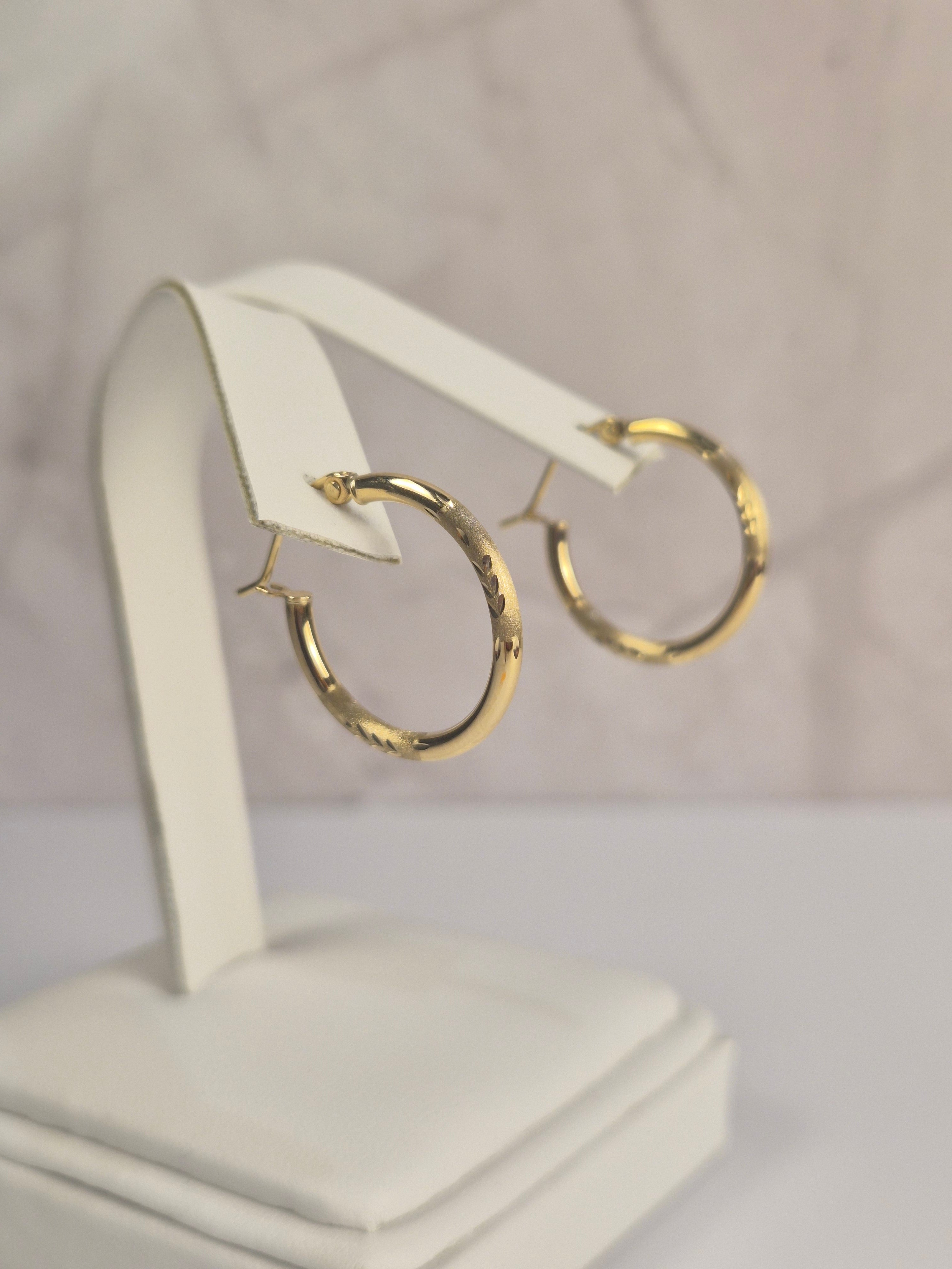 14K Gold Budded Diamond-Cut Hoop Earrings – (019)