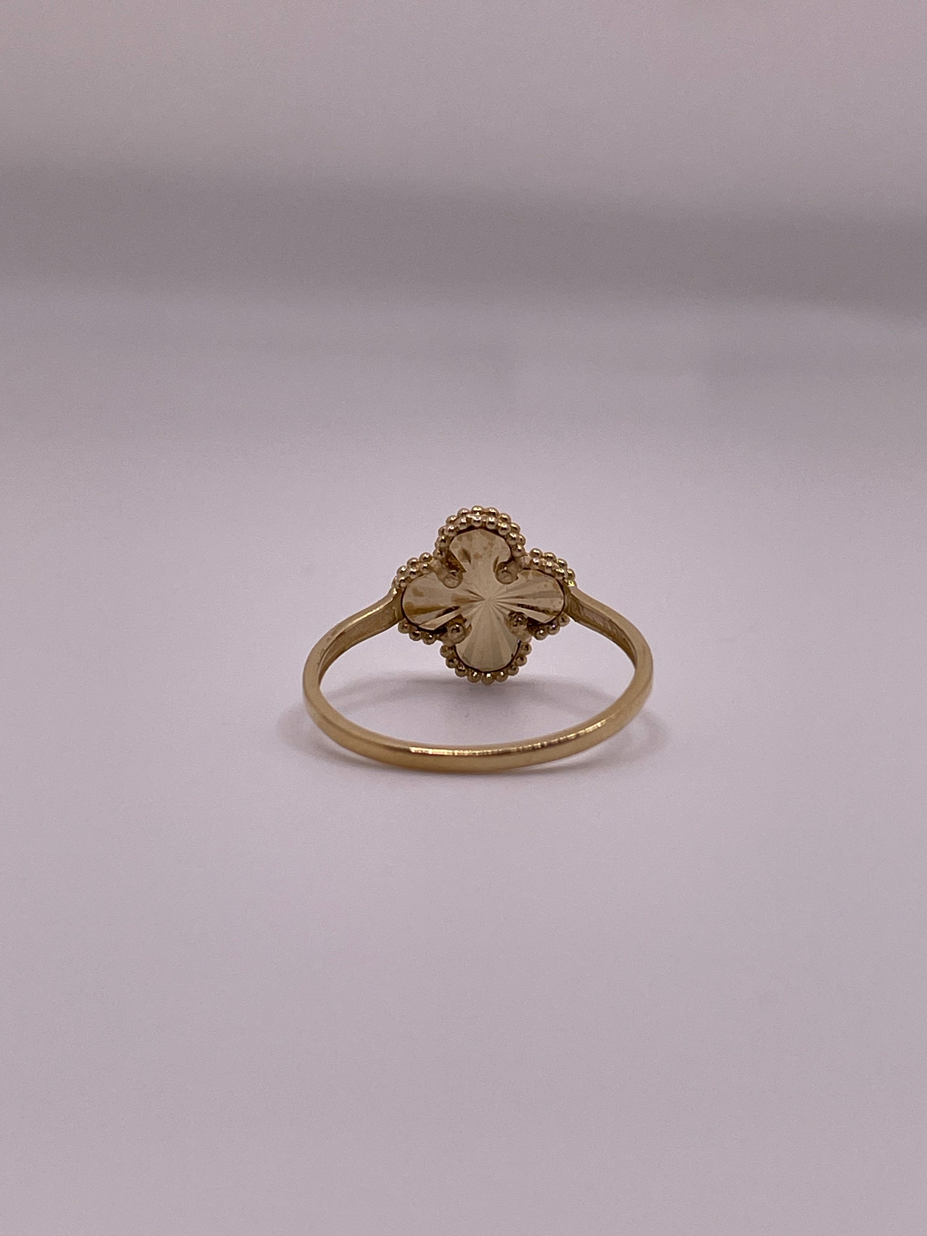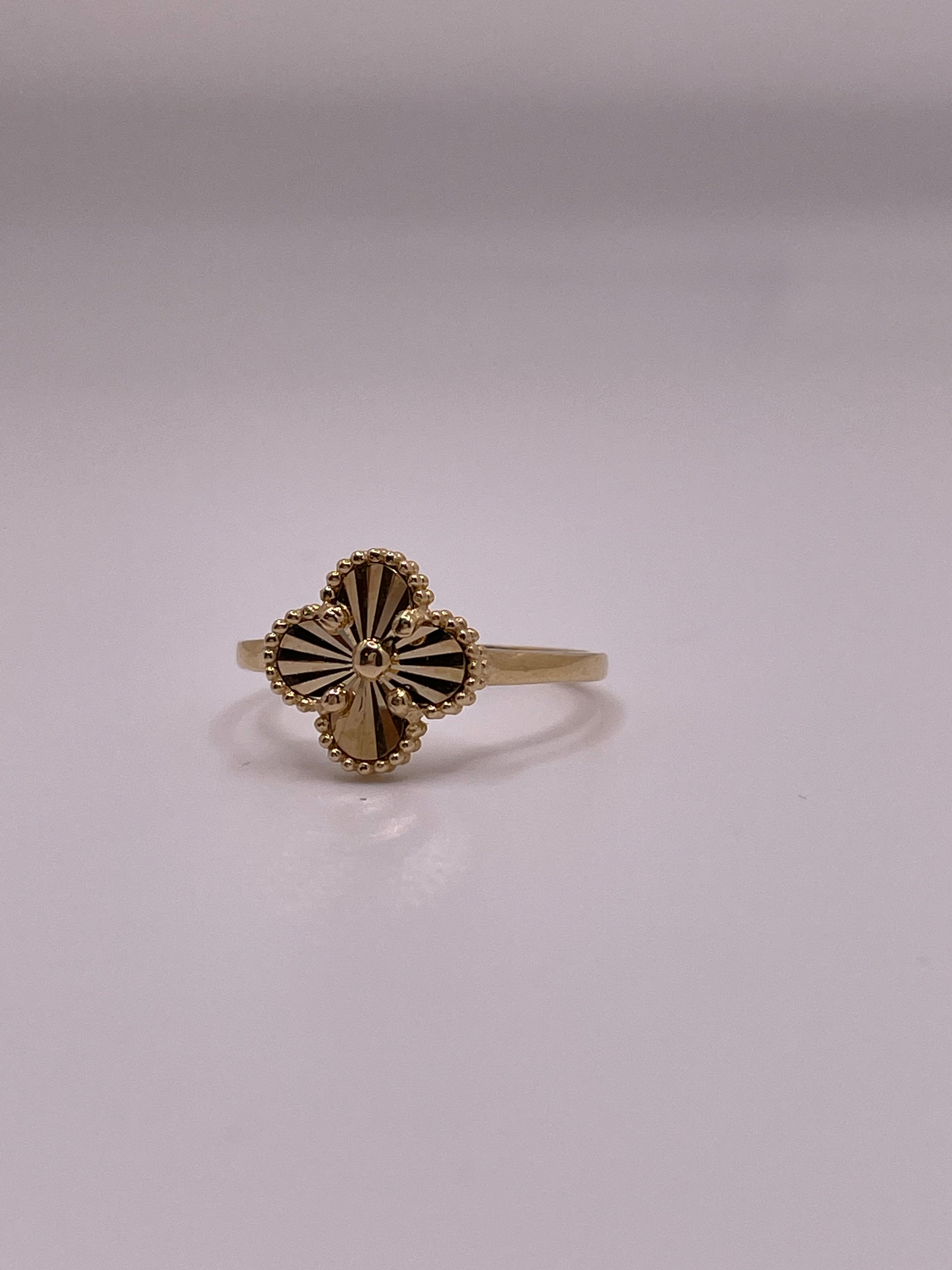 This 14K gold clover ring features a delicate and timeless design, perfect for adding a subtle yet elegant touch to any outfit. The clover motif symbolizes luck and charm, making it a meaningful piece for everyday wear or special occasions. Its sleek band ensures a comfortable fit, allowing you to wear it alone or stack it with other favorites.