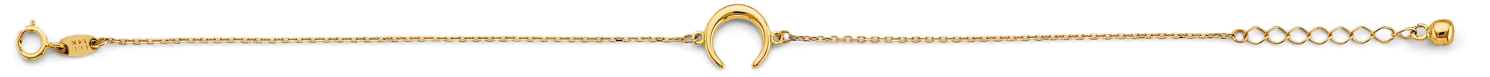 Delicate and dreamy, this 14K gold bracelet features a polished crescent moon at its center—perfect for those who love subtle celestial vibes. The fine chain and 1-inch extender make it an easy-to-layer, everyday piece you’ll love.