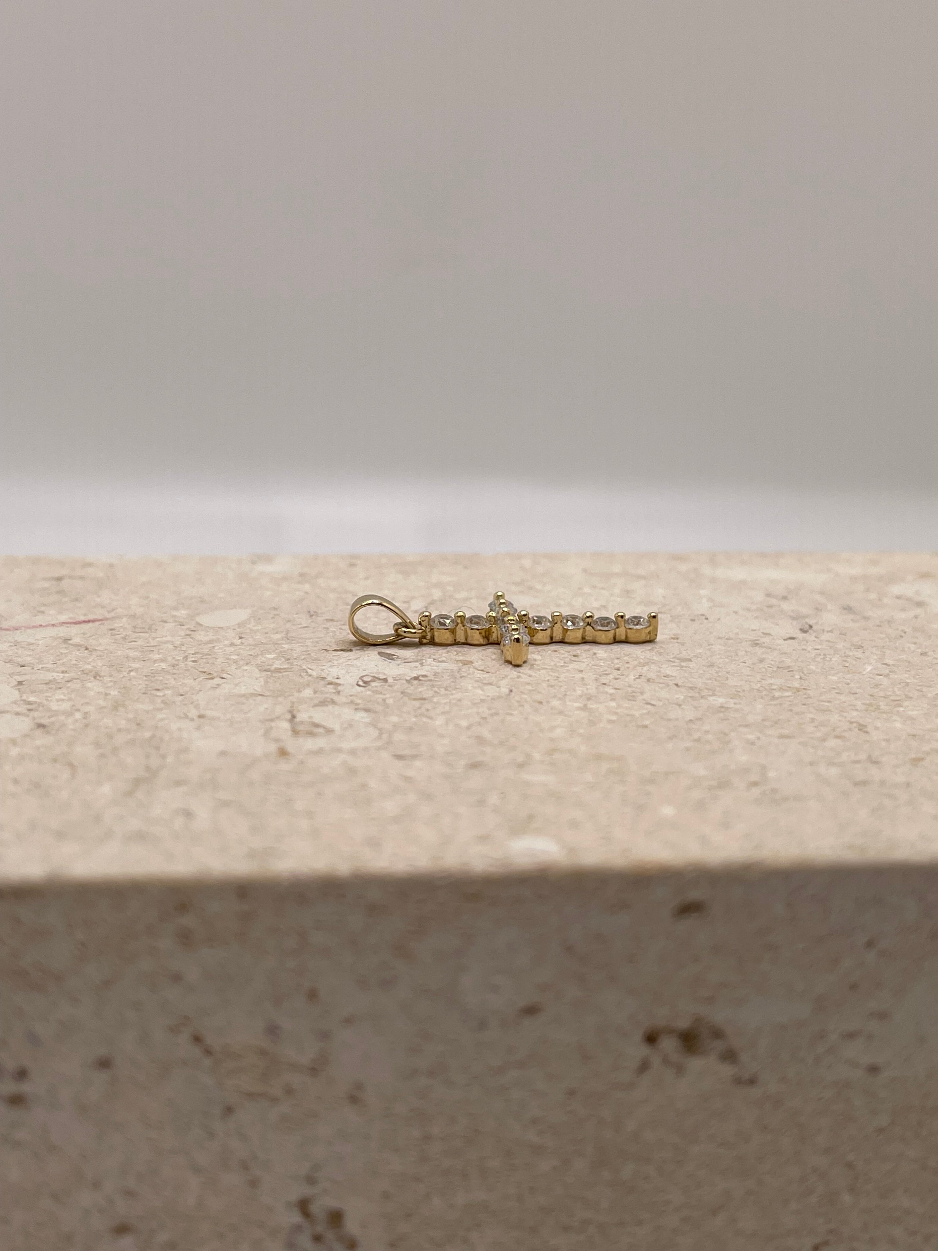 This stunning 14K yellow gold pendant features a beautifully crafted cross, embellished with sparkling white cubic zirconia stones that give it a brilliant shine. Measuring approximately 1 inch (Height: 20mm, Width: 14mm), including the bail, this pendant makes a meaningful and elegant addition to any jewelry collection. Perfect for both everyday wear and special occasions, its timeless design will always stand out.