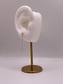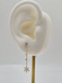 Elegant and eye-catching, these 14K gold dangling earrings feature a single CZ stone at the top, from which two additional CZ stones dangle gracefully. At the bottom, a stunning flower adorned with multiple CZ stones adds a sparkling finishing touch. Designed with secure screw-back closures for comfort and peace of mind.