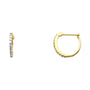 Dainty and classic, these 14K gold mini huggie earrings are set with sparkling white CZ stones along the front. Lightweight and chic, they’re perfect for everyday wear or stacking with your favorite hoops.