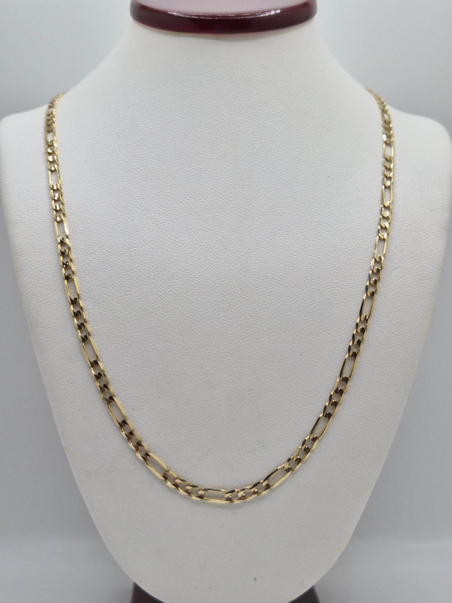 A timeless Figaro chain crafted in solid 14K yellow gold, featuring the classic 3+1 link pattern. Its bold yet elegant design makes it perfect for everyday wear or layering with other pieces.