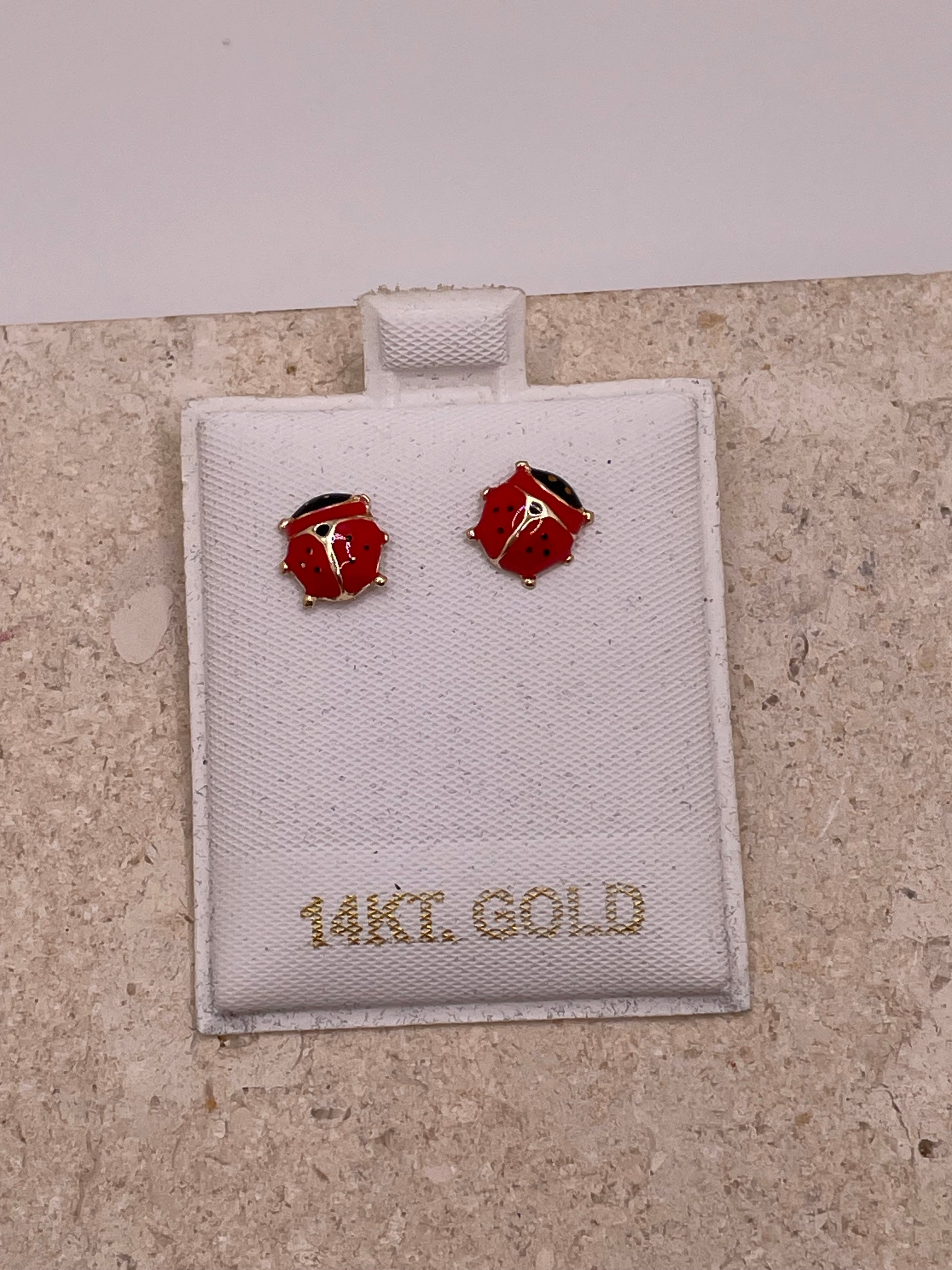 These charming 14k gold ladybug earrings feature vibrant red and black enamel, with intricate gold detailing throughout the design. The playful and unique style makes them a fun yet elegant addition to any jewelry collection. With secure screw-back closures, these earrings offer comfort and peace of mind for everyday wear.
