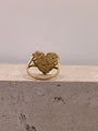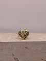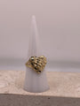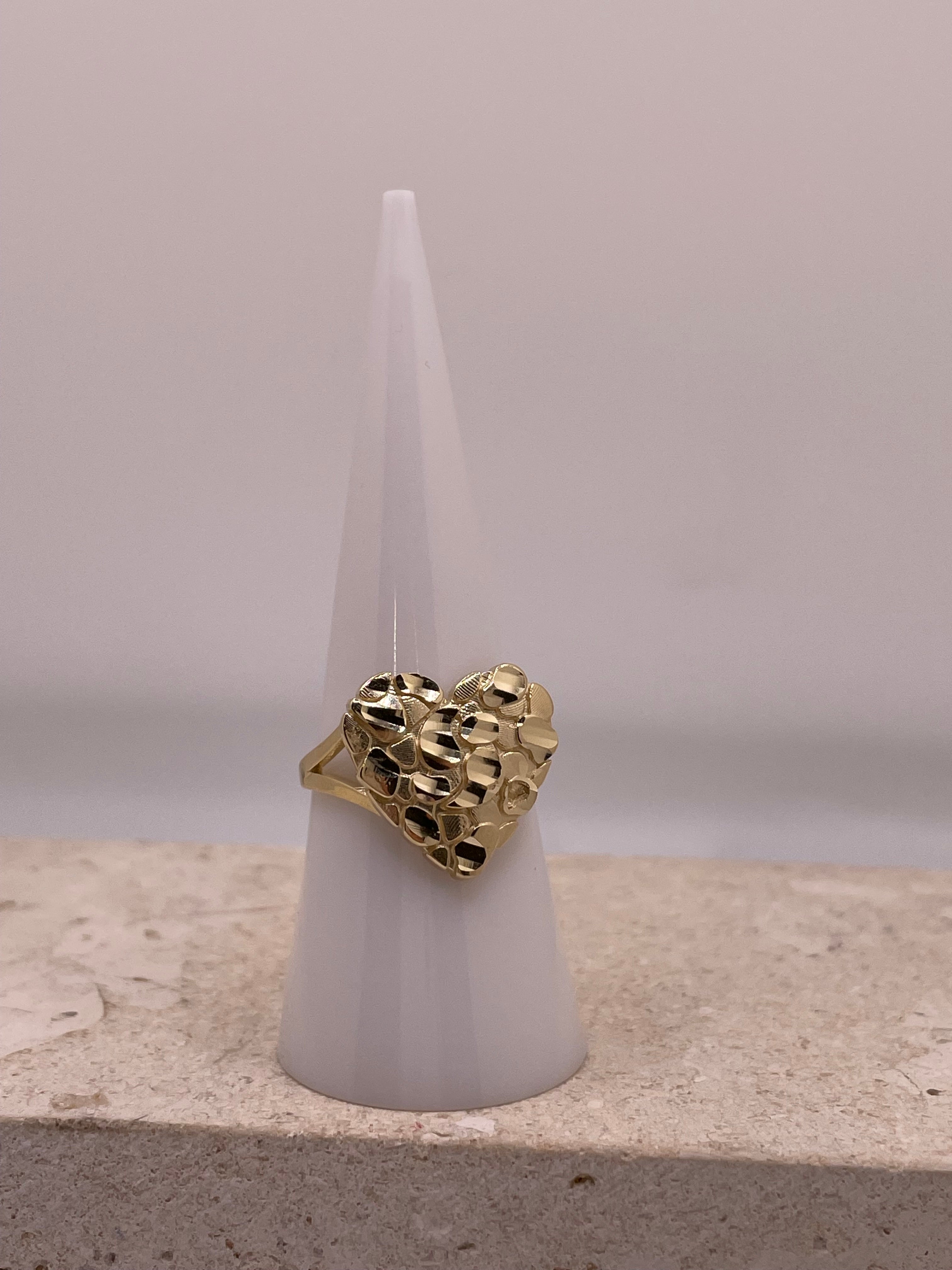 This 14K gold women's ring features a bold, beautifully crafted large heart-shaped nugget design, combining elegance with a striking textured look. Its standout size makes it a statement piece while maintaining a timeless appeal—perfect for those who love classic yet eye-catching jewelry.