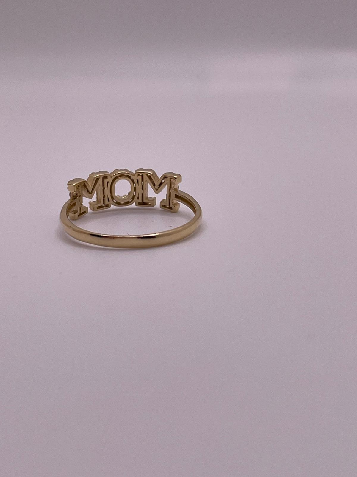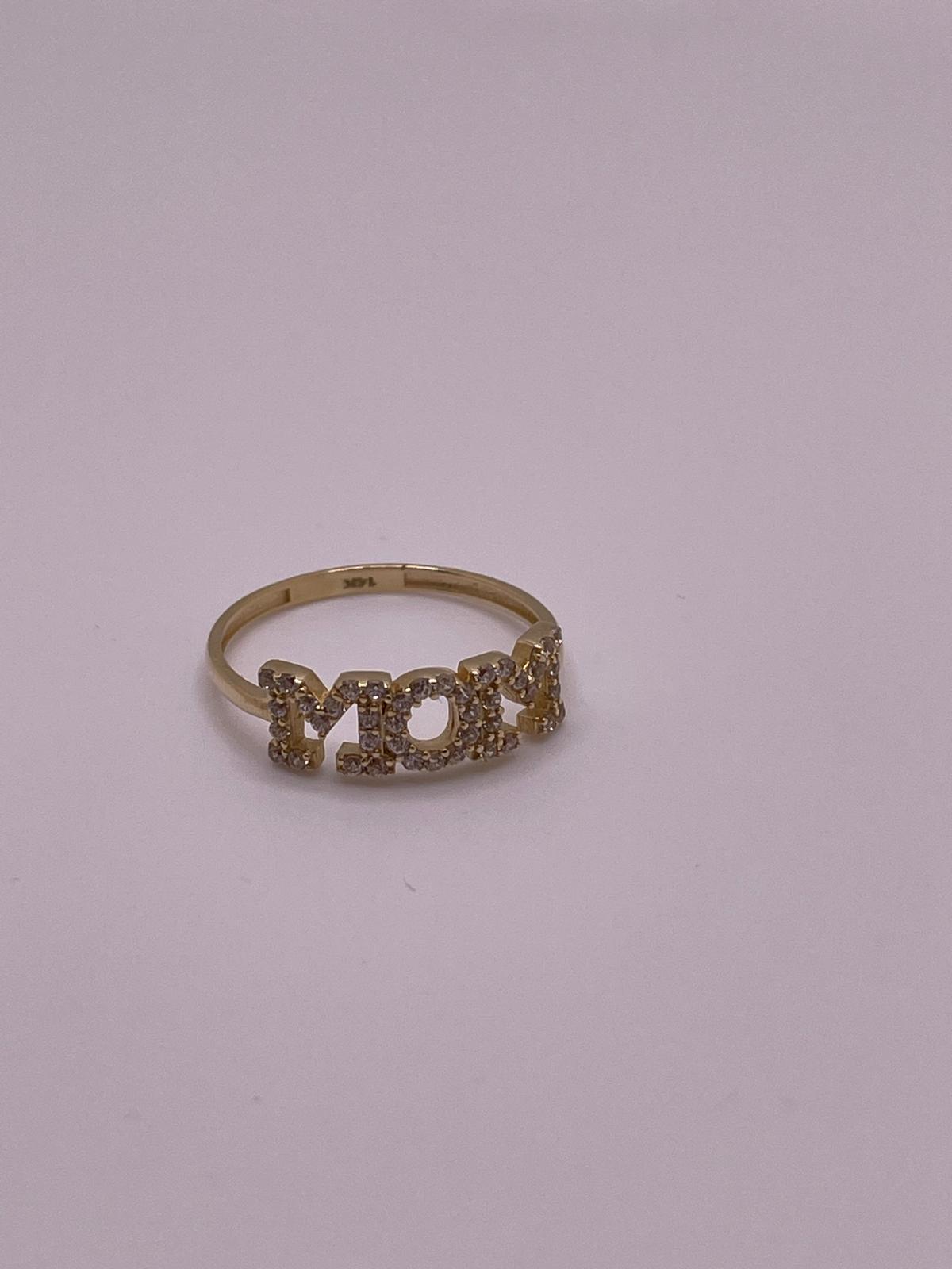 Say it loud, say it sparkly 💎 This 14K yellow gold ring spells out “MOM” in bold capital letters, covered in shimmering CZ stones. A meaningful piece with a little extra shine — because she deserves nothing less.