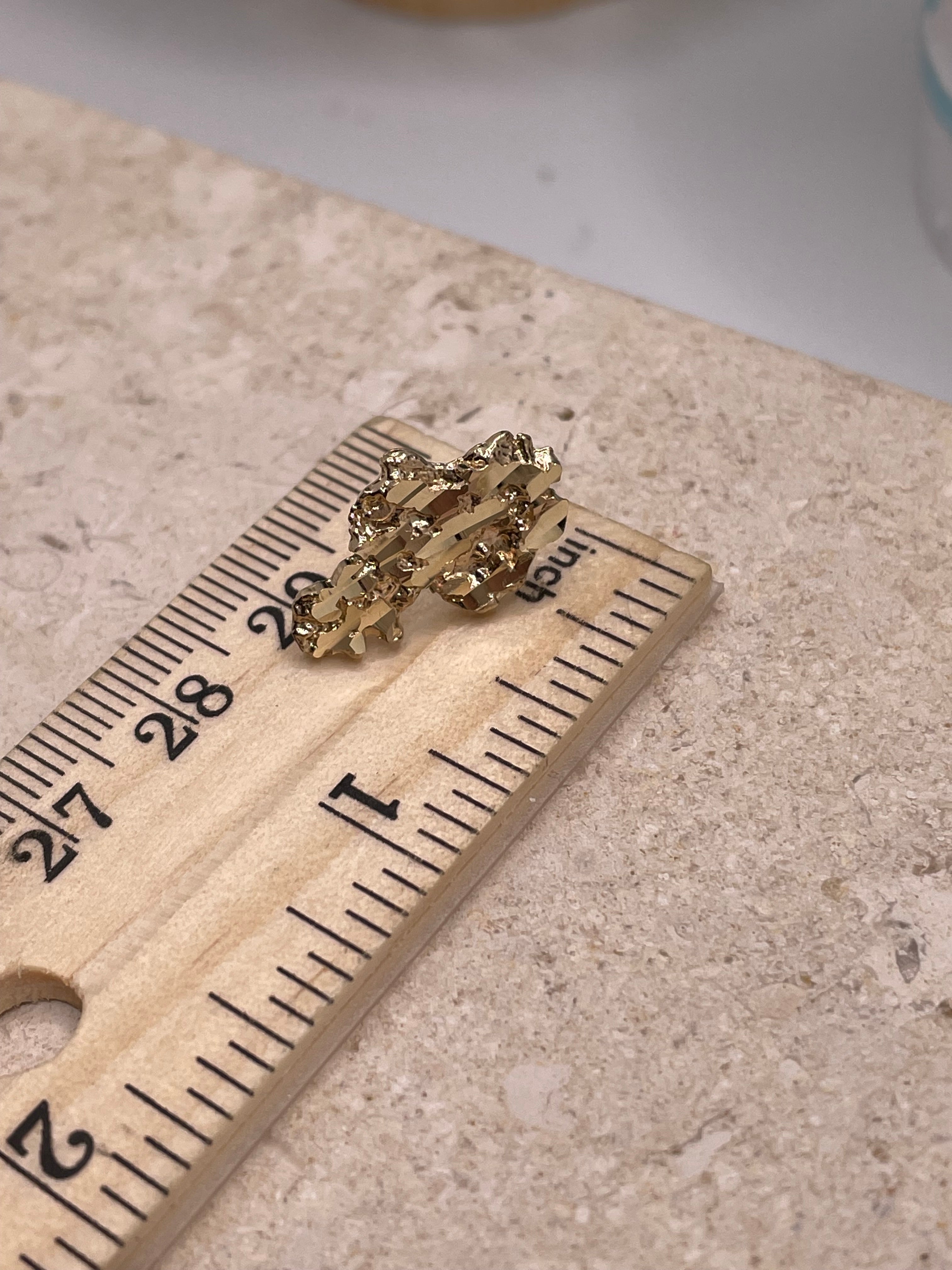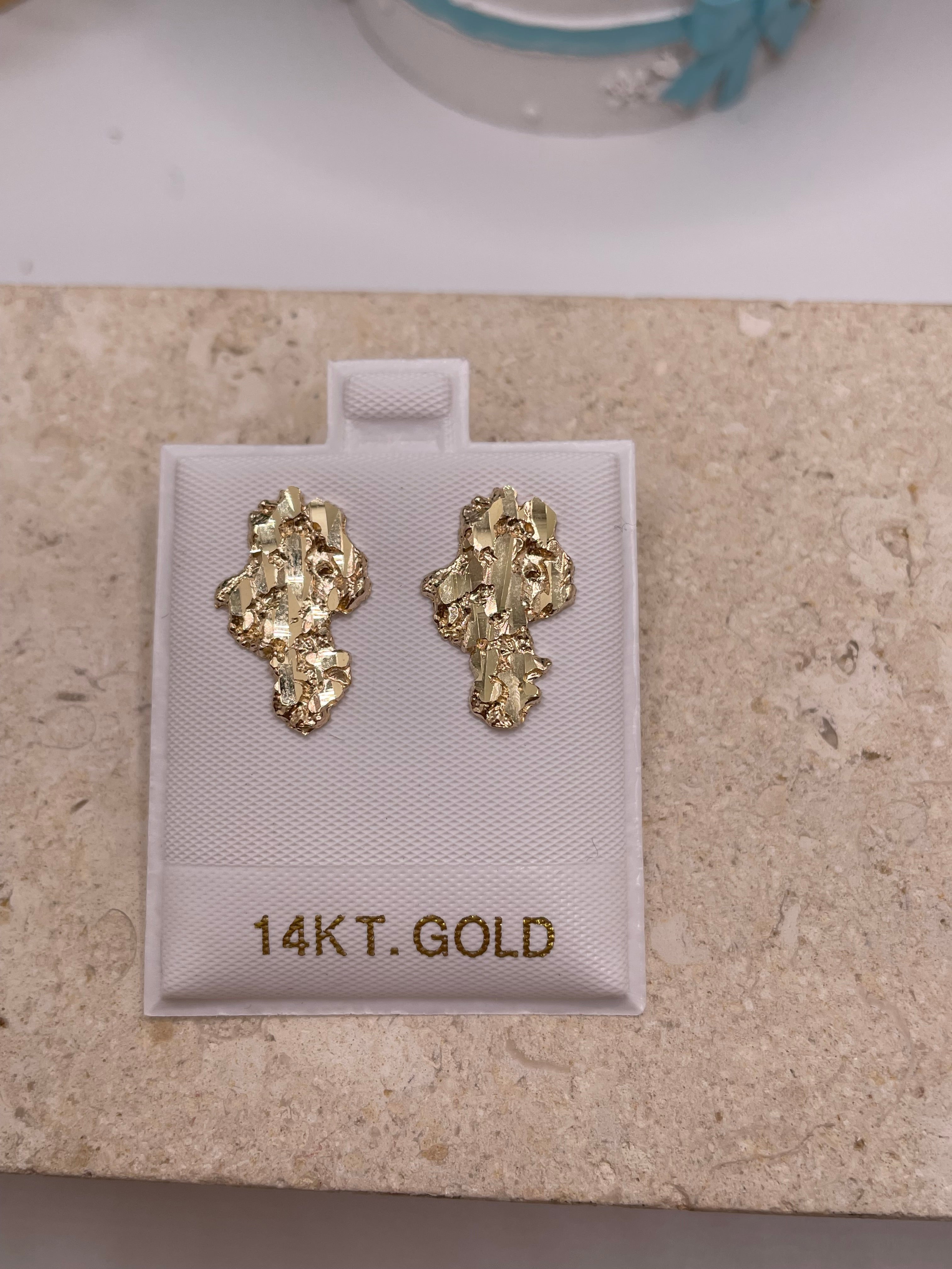 These unique 14K gold nugget stud earrings feature a long, irregular shape that adds an edgy, modern touch to any look. Perfect for both men and women, they are secured with butterfly push-back closures for a comfortable fit and stylish finish.