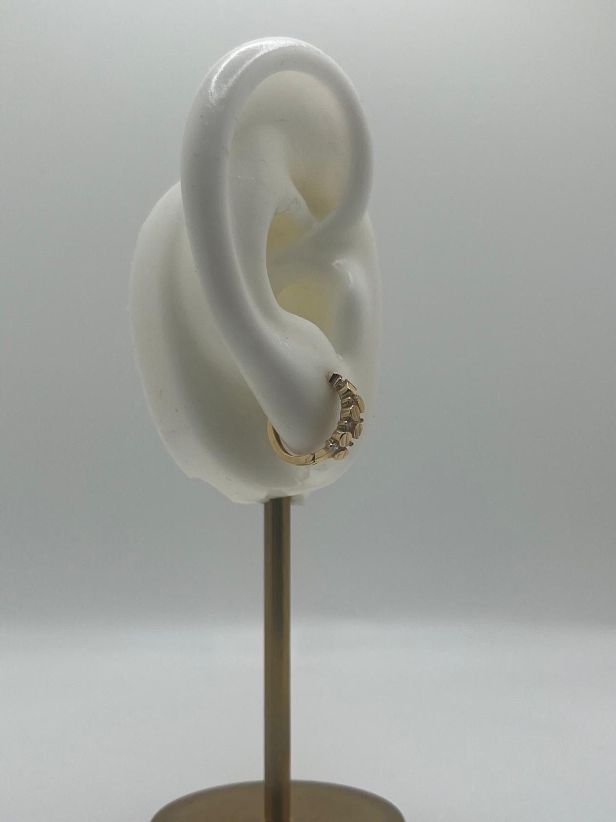 These 14K yellow gold huggies are serving classic nugget style with a luxe twist. Featuring a bold textured design and sparkling CZ stones woven throughout, they bring that old-school gold look we all know and love — but make it ✨elevated✨. Perfect for everyday wear or to add a little edge to your ear stack.