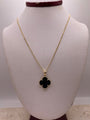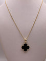 This bold and stylish set features a 14K gold 1.2mm open wheat chain paired with a sleek black clover trebol pendant. The contrast between gold and black creates a modern, chic look, making it a standout accessory for any jewelry collection.