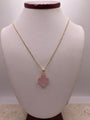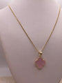 This elegant set features a 14K gold 1.2mm open wheat chain paired with a stunning pink clover trebol pendant. The delicate yet eye-catching design makes it a perfect everyday piece or a thoughtful gift. The soft pink hue adds a touch of charm and sophistication.