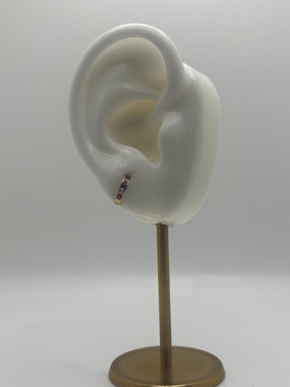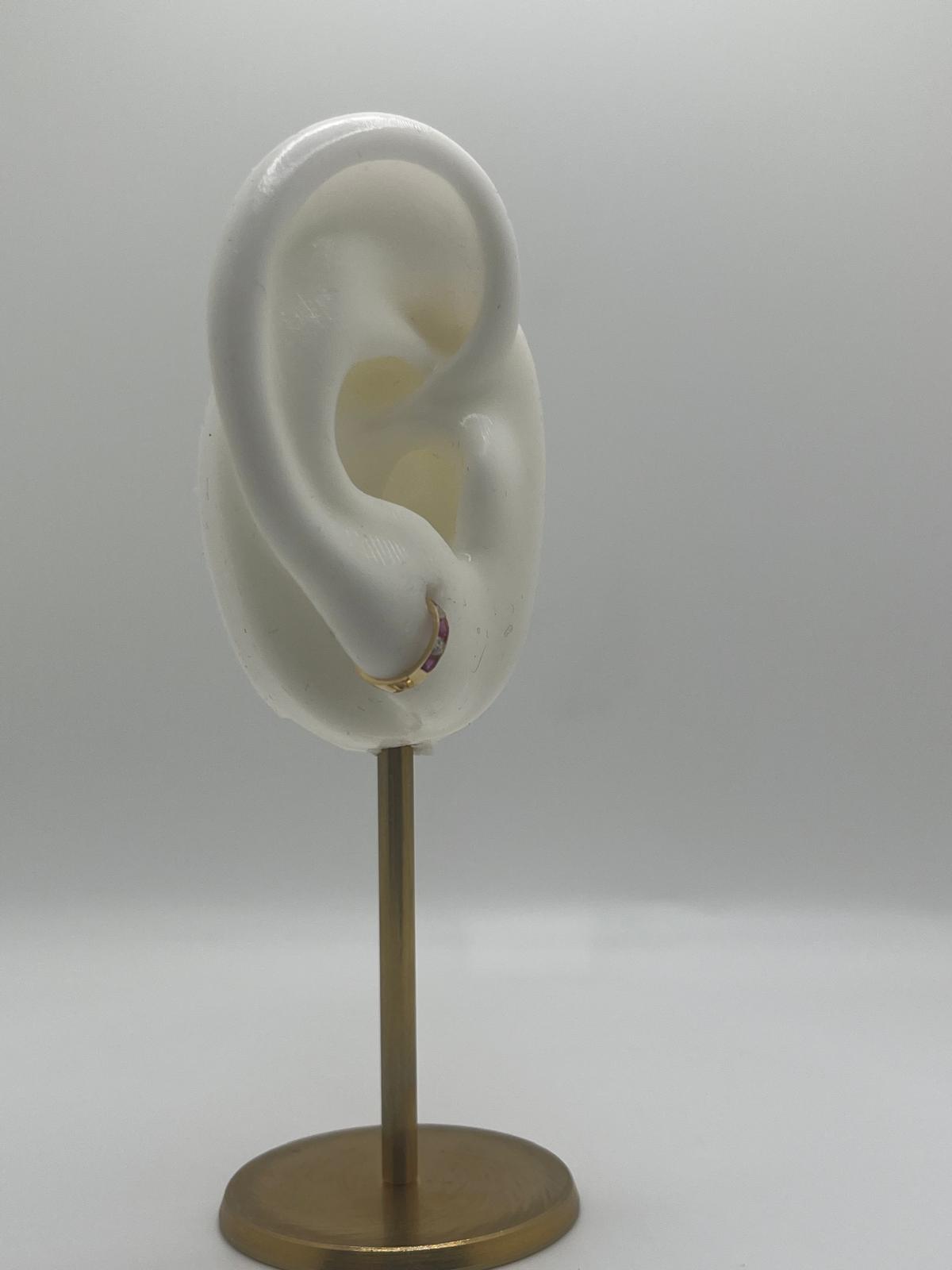 14K Gold Pink & White CZ Huggie Earrings (033)