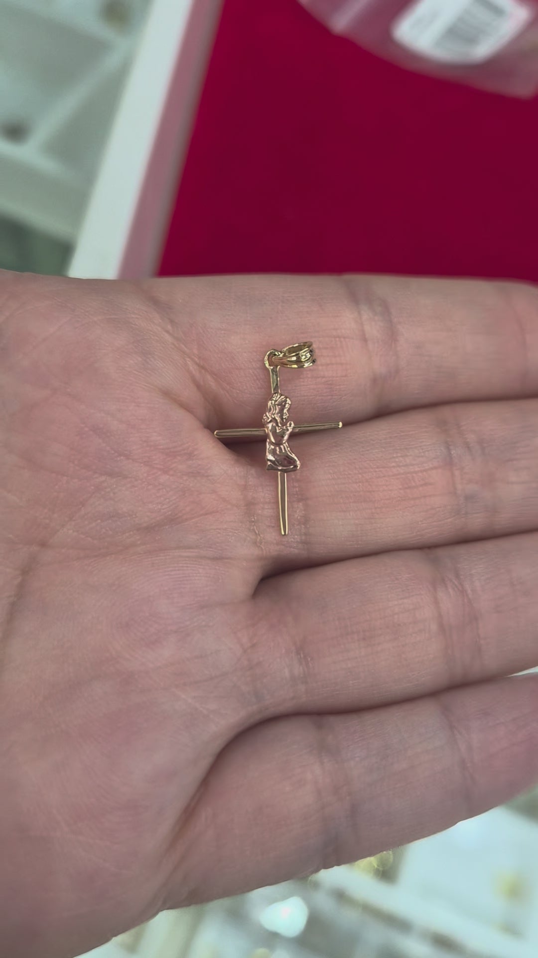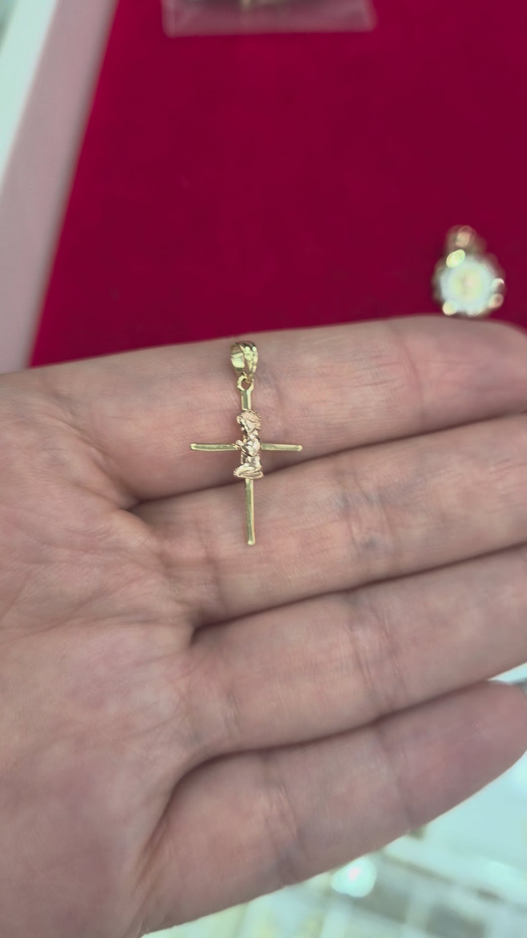 The combination of yellow gold and rose gold adds dimension and warmth, while the delicate detailing brings the piece to life. A timeless symbol of faith and devotion, perfect for honoring such an important moment ✨