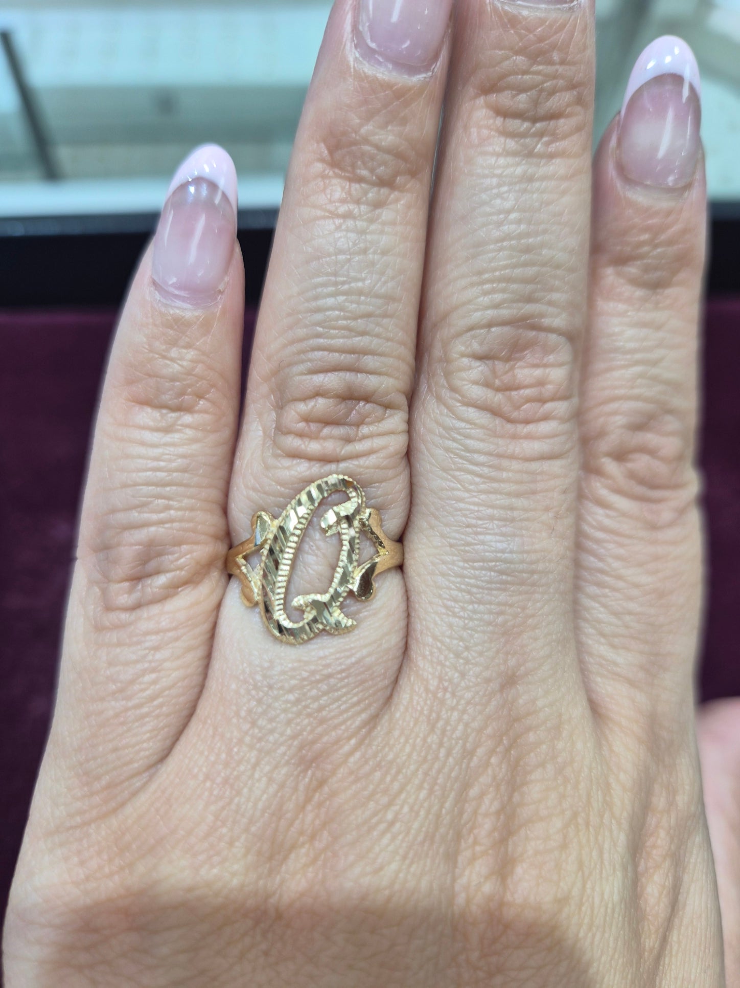 14k gold “q” cursive initial ring