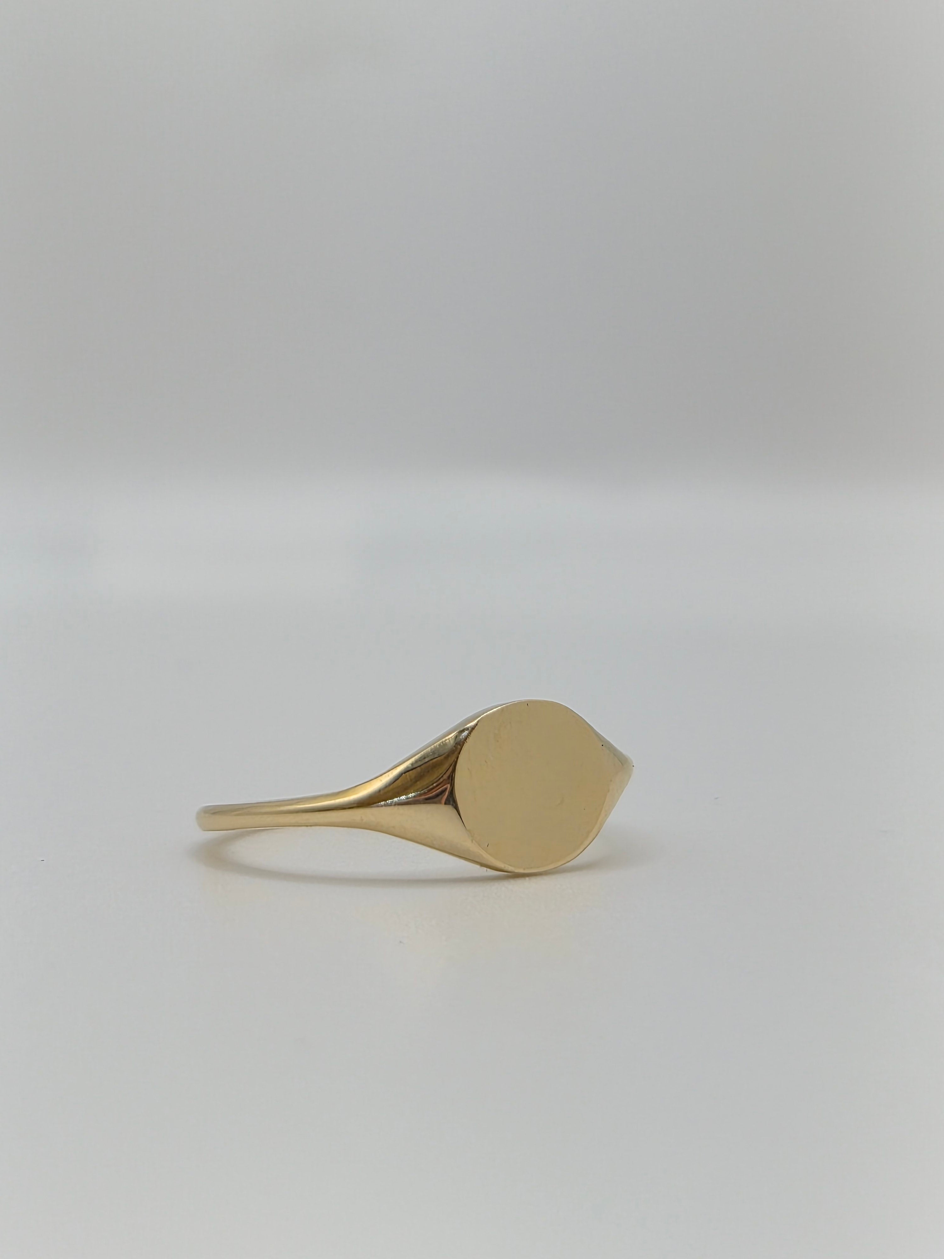 A refined take on the traditional signet, this round design is crafted in 14K real yellow gold with a polished surface that’s perfect for engraving. Minimal and versatile, it makes a meaningful everyday piece or a thoughtful personalized gift.