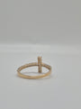 This 14K gold ring features a sideways cross design adorned with sparkling CZ stones, creating a modern yet timeless look. With a 10mm band width, this ring makes a bold yet elegant statement, perfect for everyday wear or special occasions.