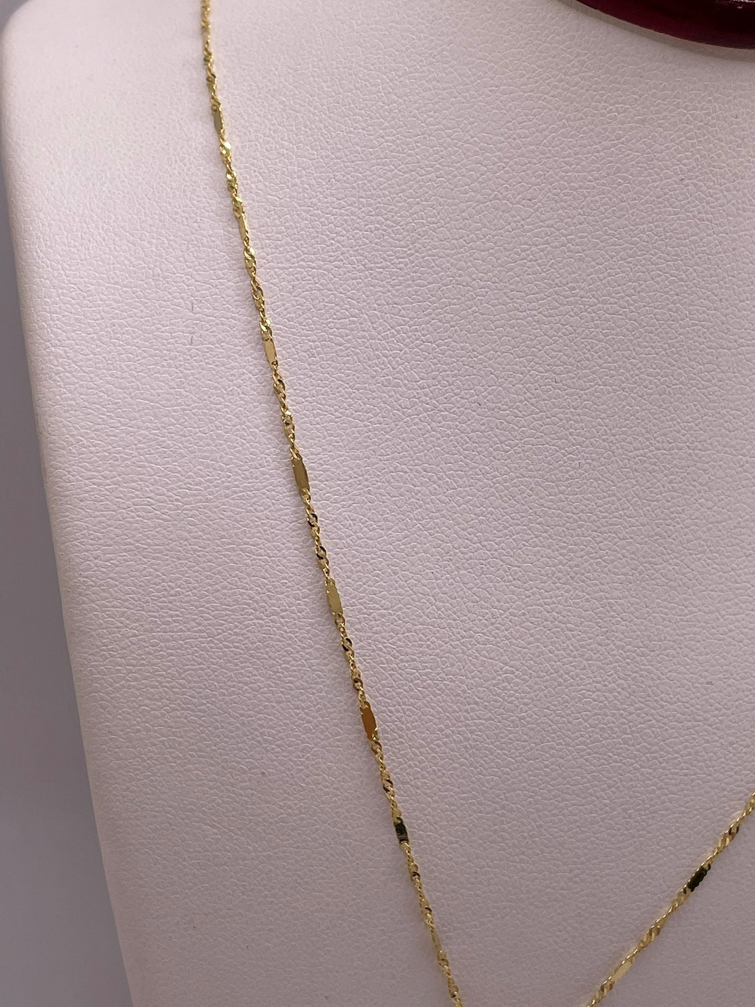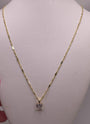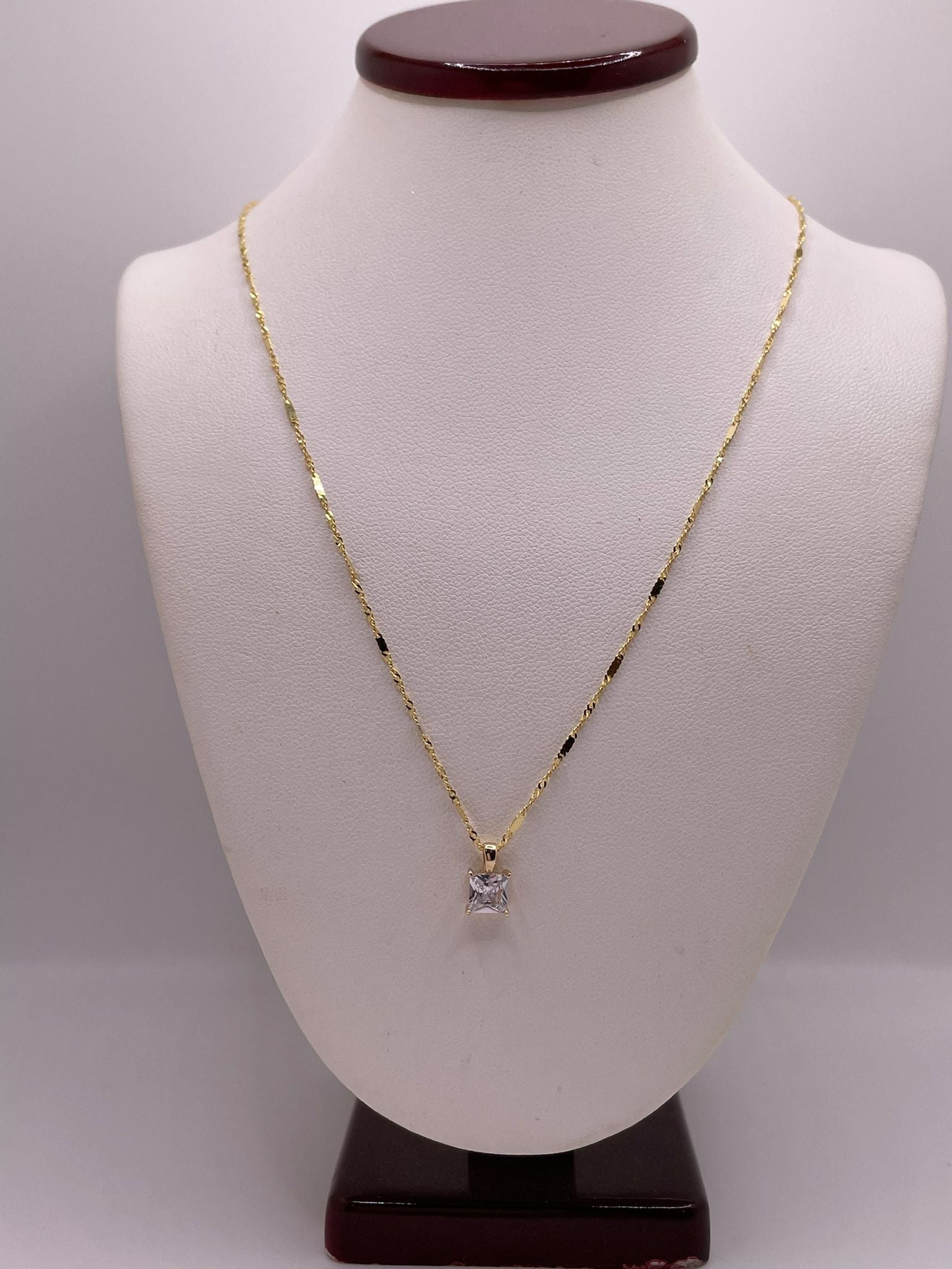 14K Gold 16" Singapore Bar Chain with Square CZ Pendant