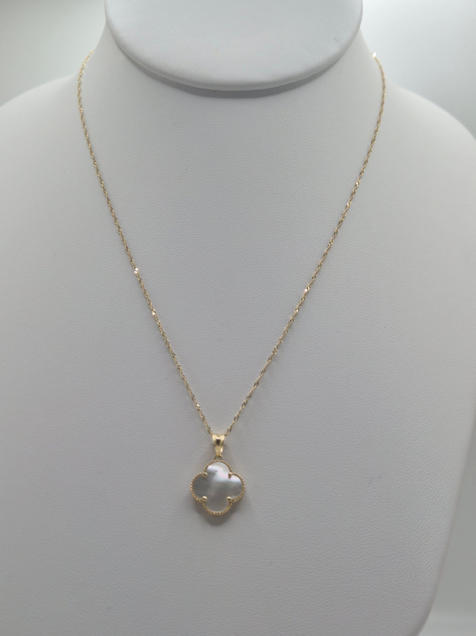 14K Gold Singapore Chain with White Mother-of-Pearl Clover Pendant