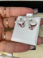 These unique 14k gold telephone earrings combine a playful yet elegant design. The top features an unscrewable CZ stone, while the earring loops gracefully under the ear. Beneath the earlobe rests a delicate flower adorned with sparkling white and pink CZ stones, adding a touch of charm and sophistication. Perfect for those seeking a distinctive and stylish accessory.