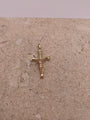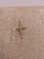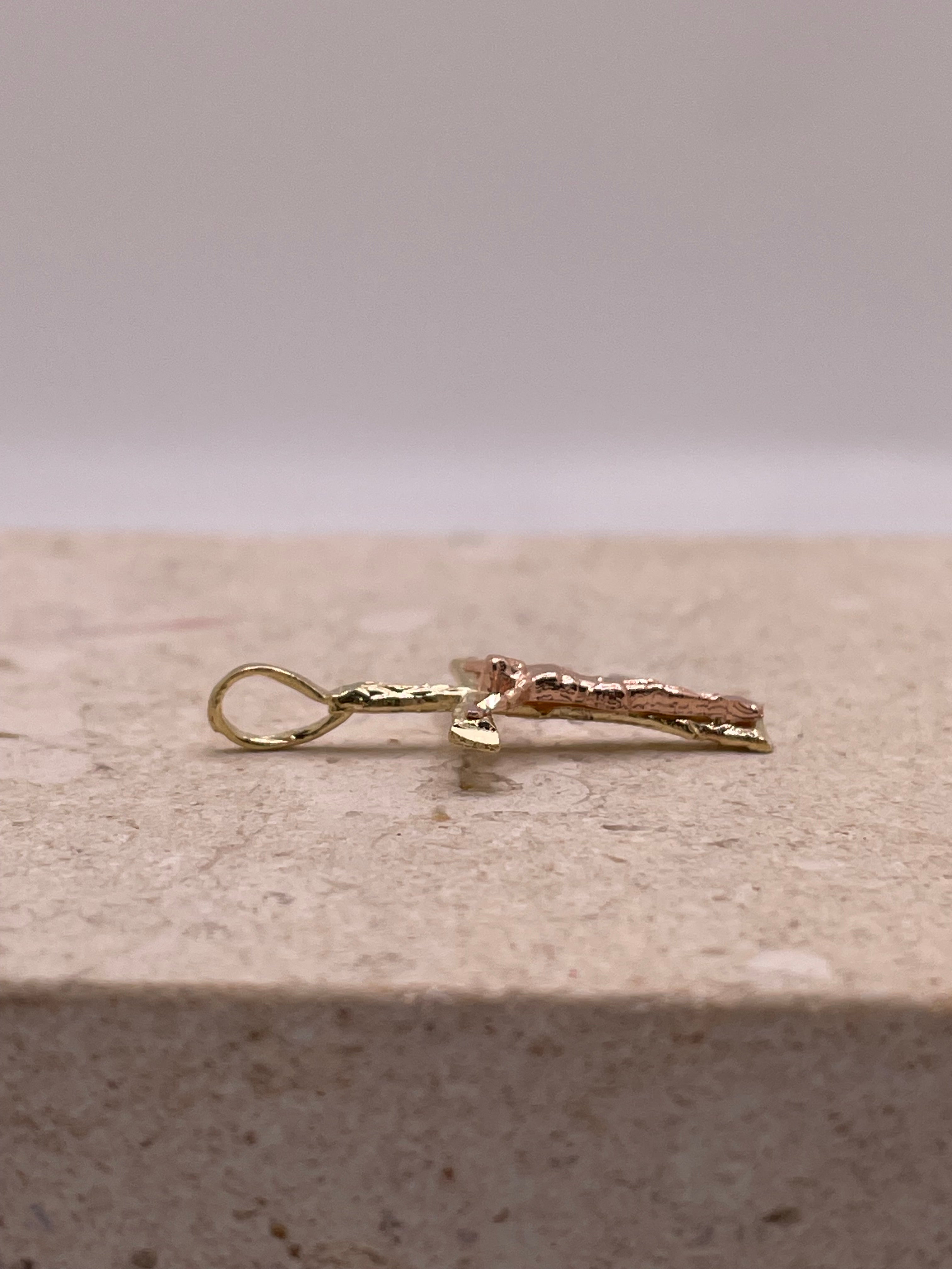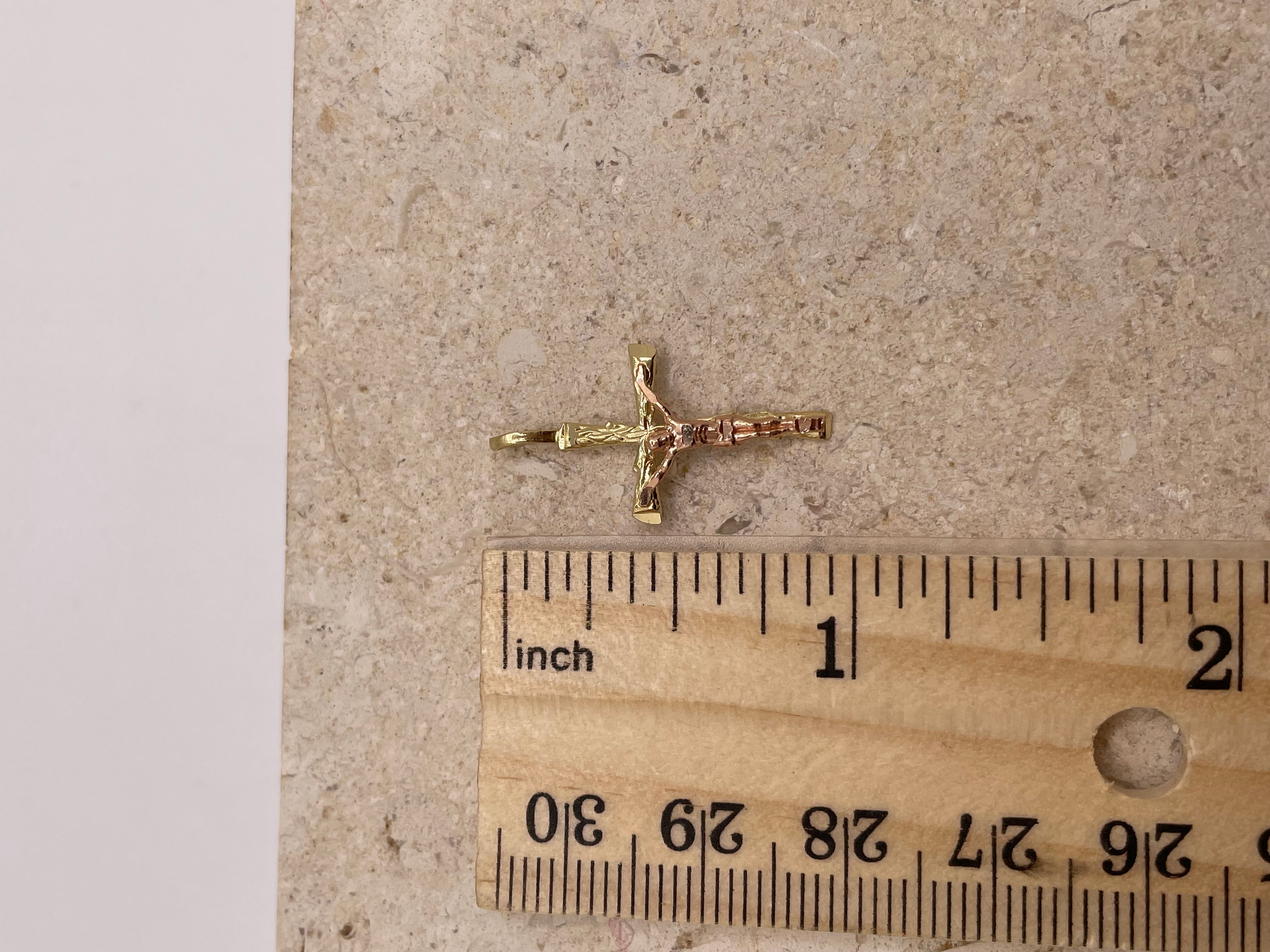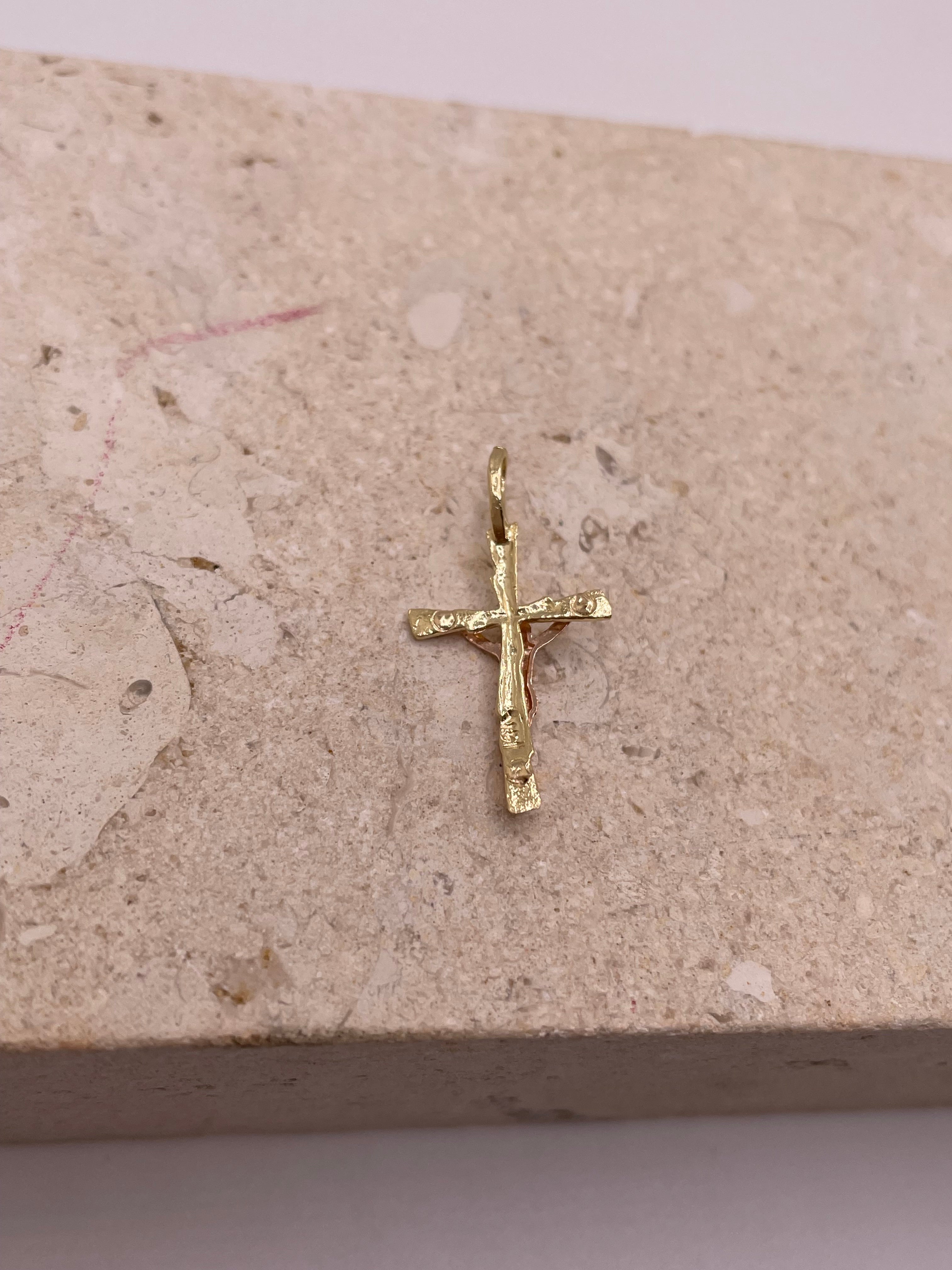 This delicate 14K solid gold crucifix pendant is a timeless symbol of faith, crafted with exquisite detail. The two-tone design features a yellow gold cross accented by a rose gold figure of Jesus, creating a beautiful contrast that adds elegance to its classic design. Measuring 1 inch long, including the bail, it’s the perfect size for a subtle and meaningful touch.