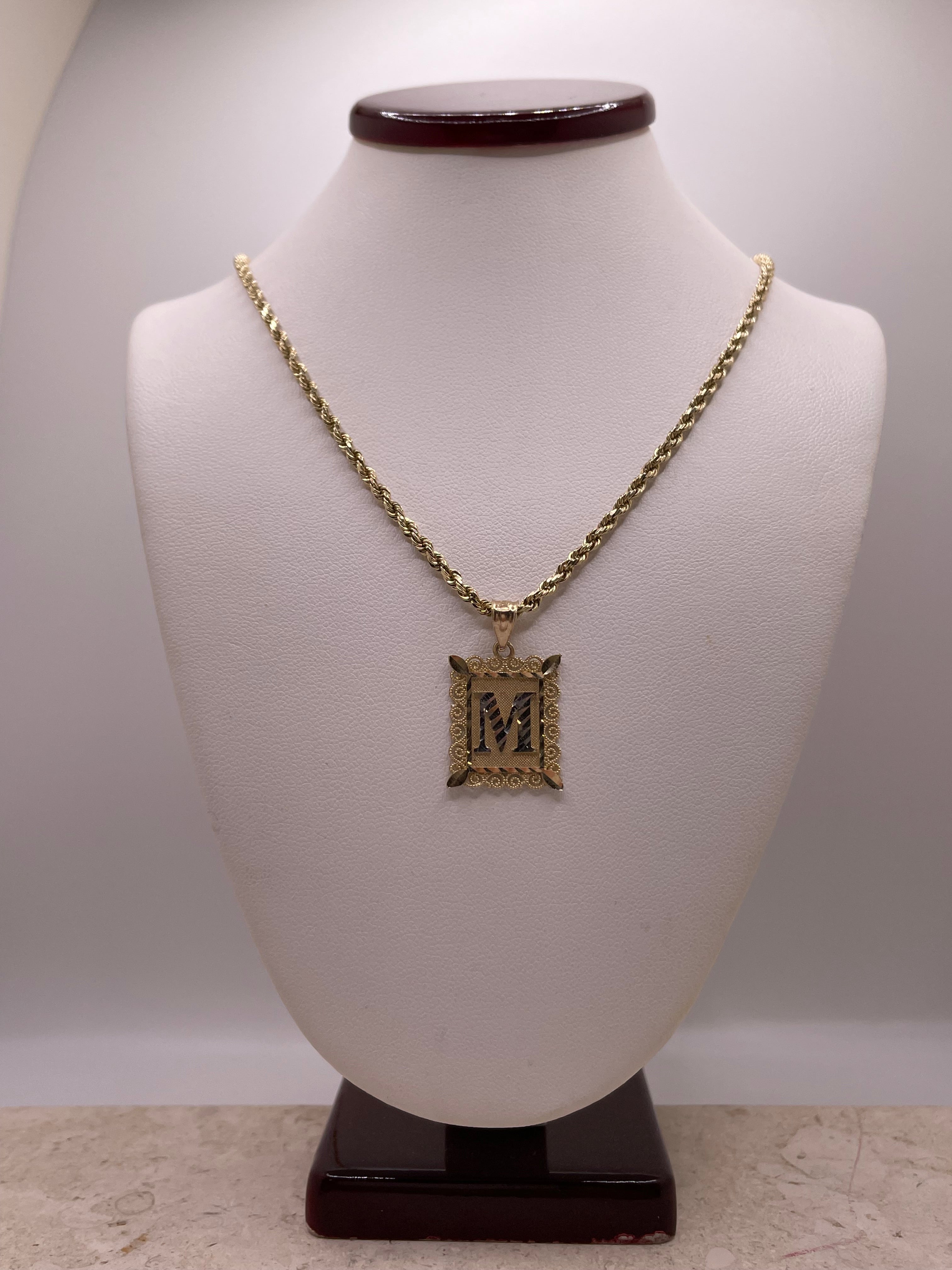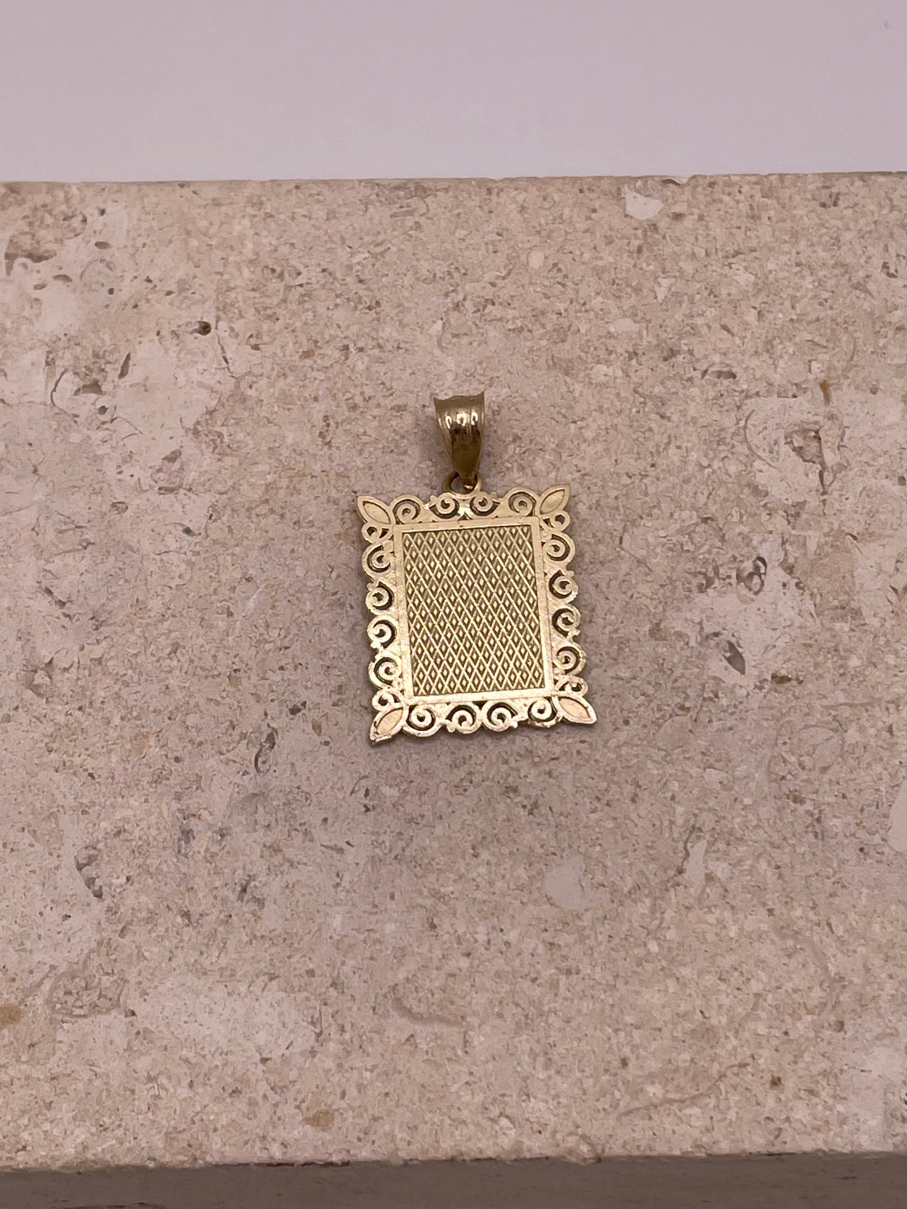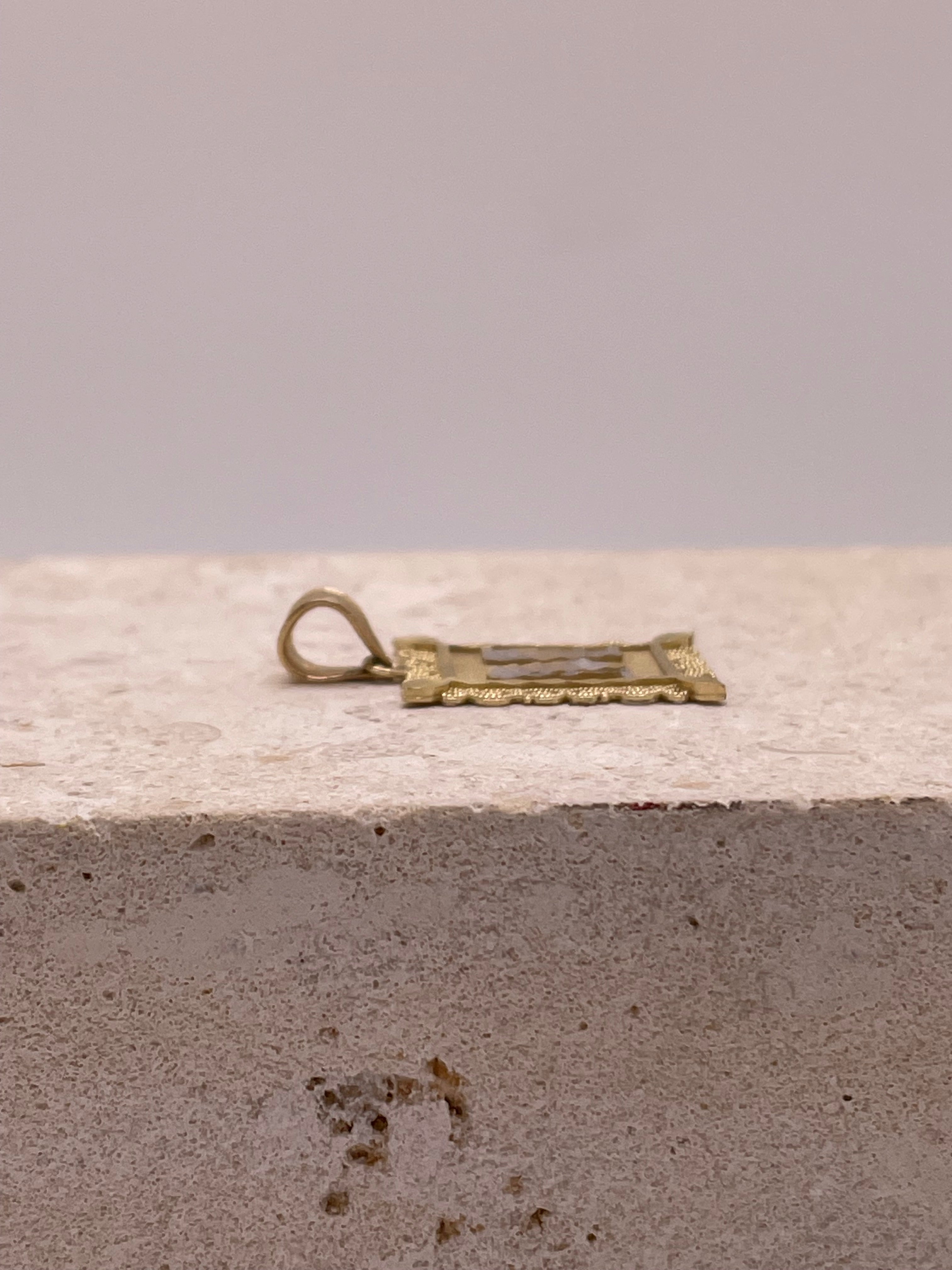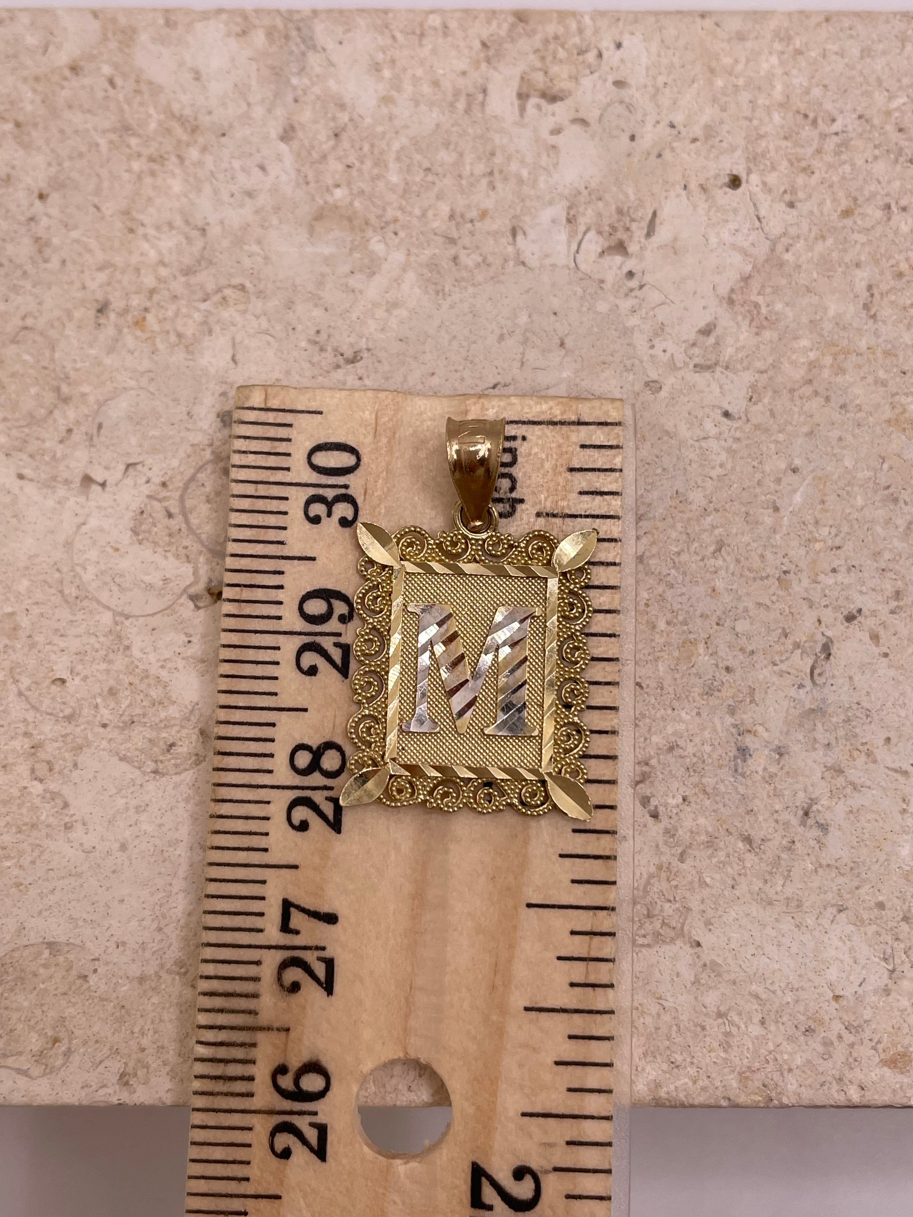 14k gold two tone square initial pendant (medium)