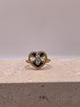 The band adds extra elegance, with three white CZ stones adorning each side of the heart. This striking piece is perfect for those seeking a meaningful and luxurious statement ring.