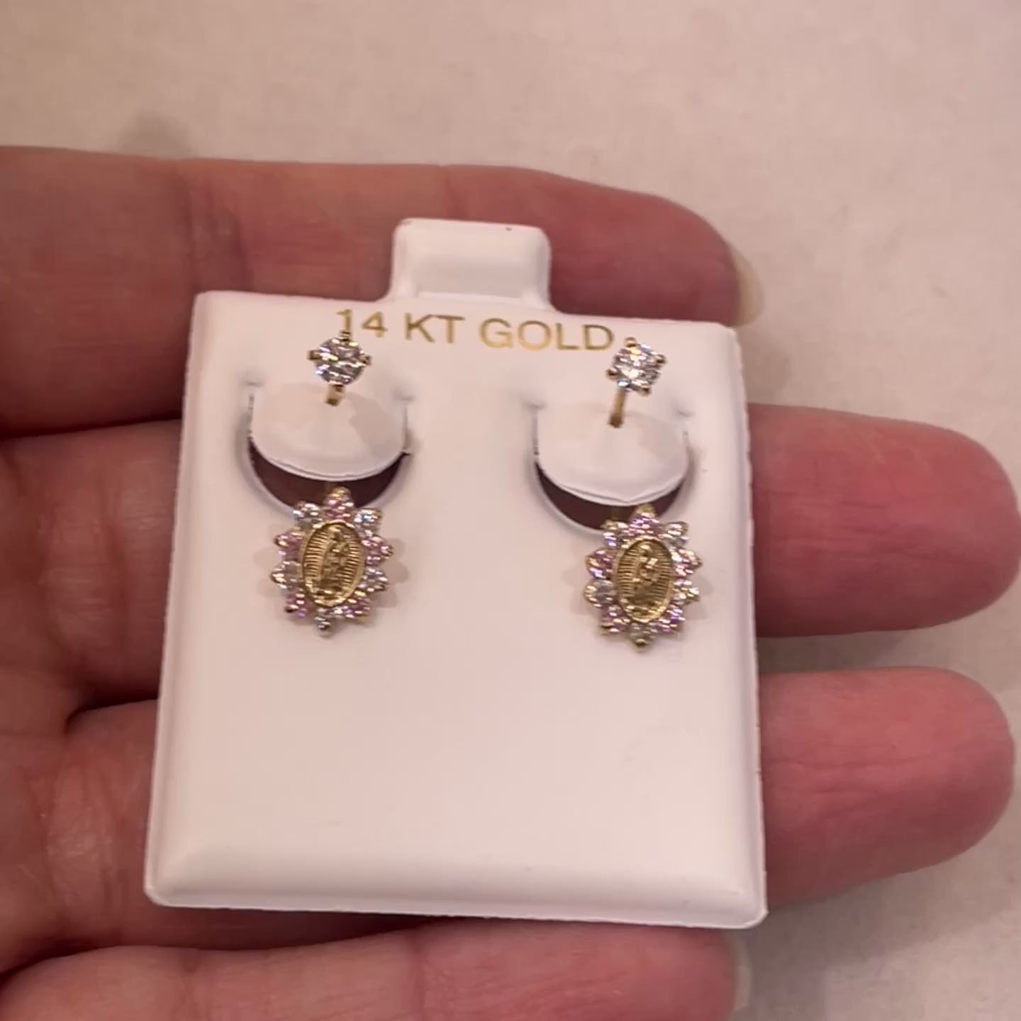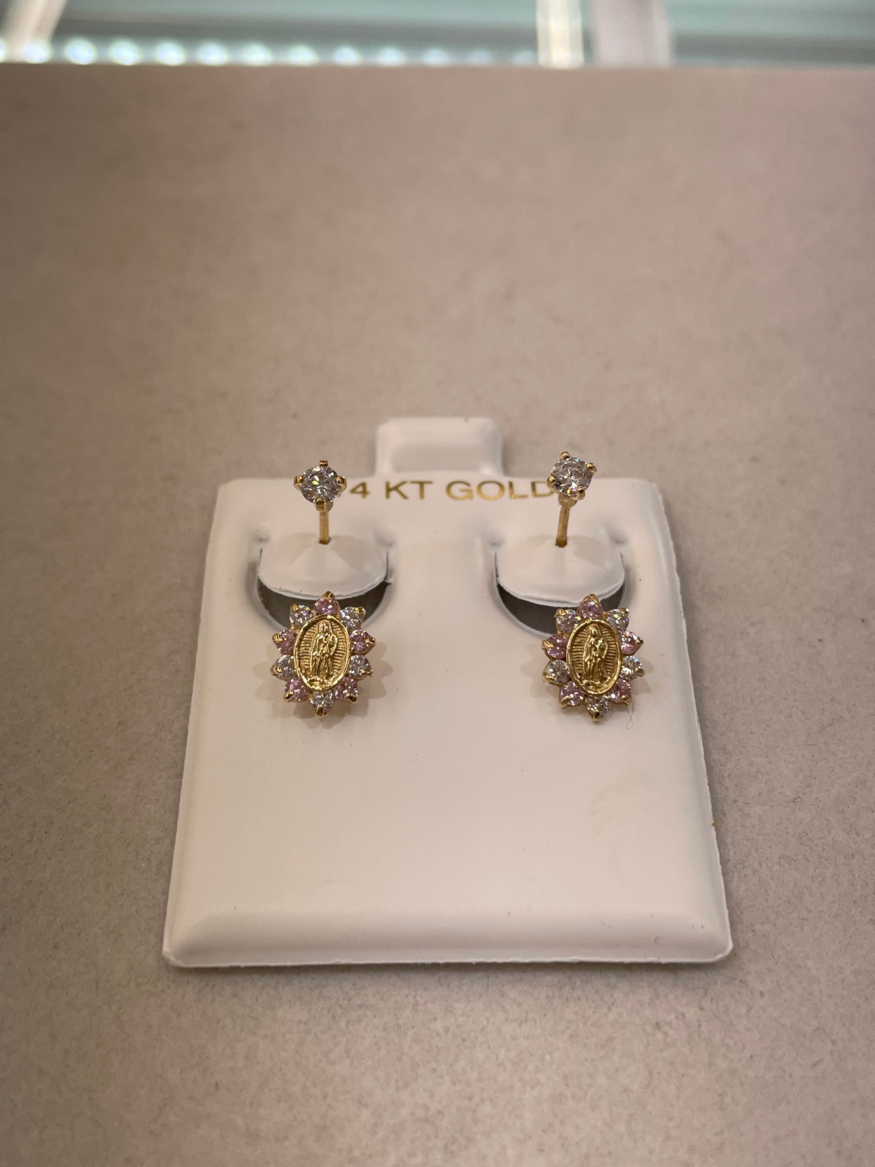 14k gold virgencita virgin mary telephone earrings
