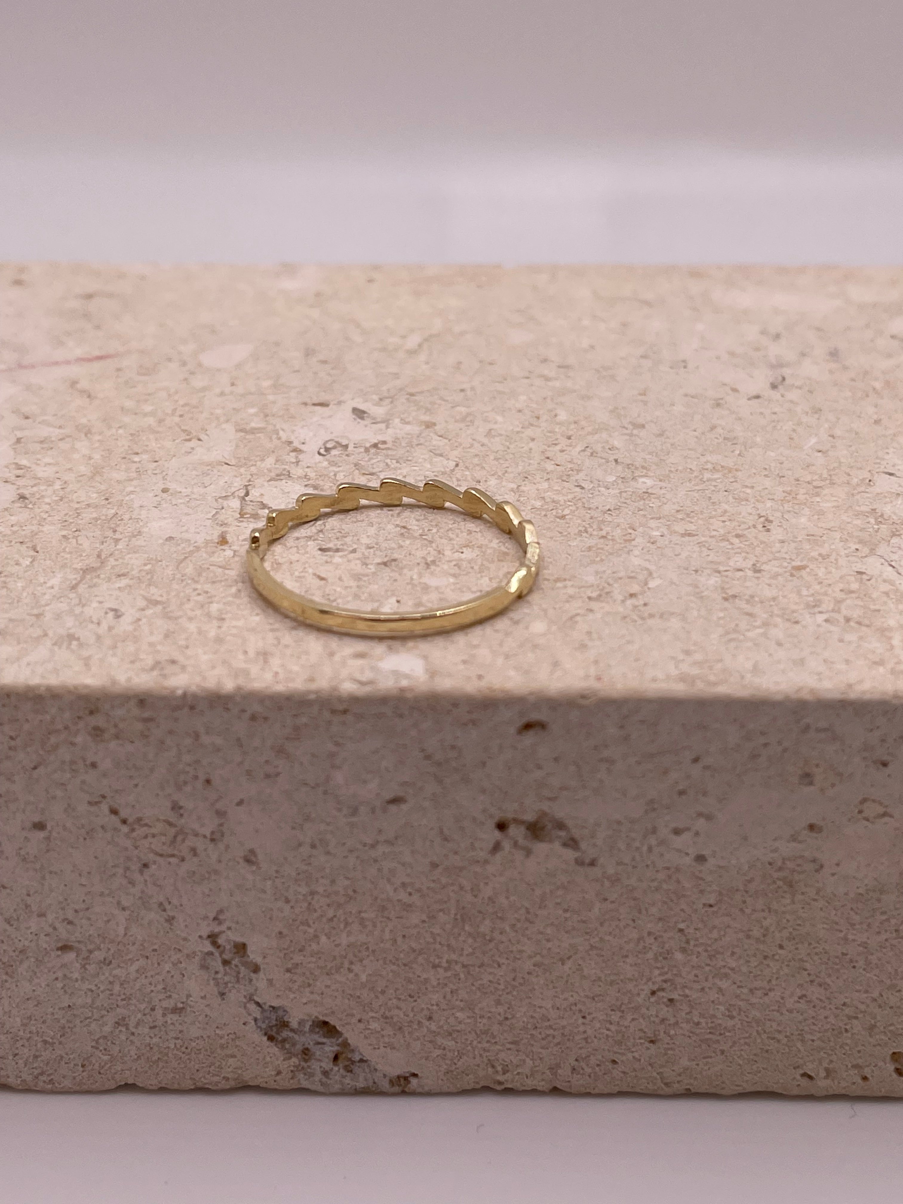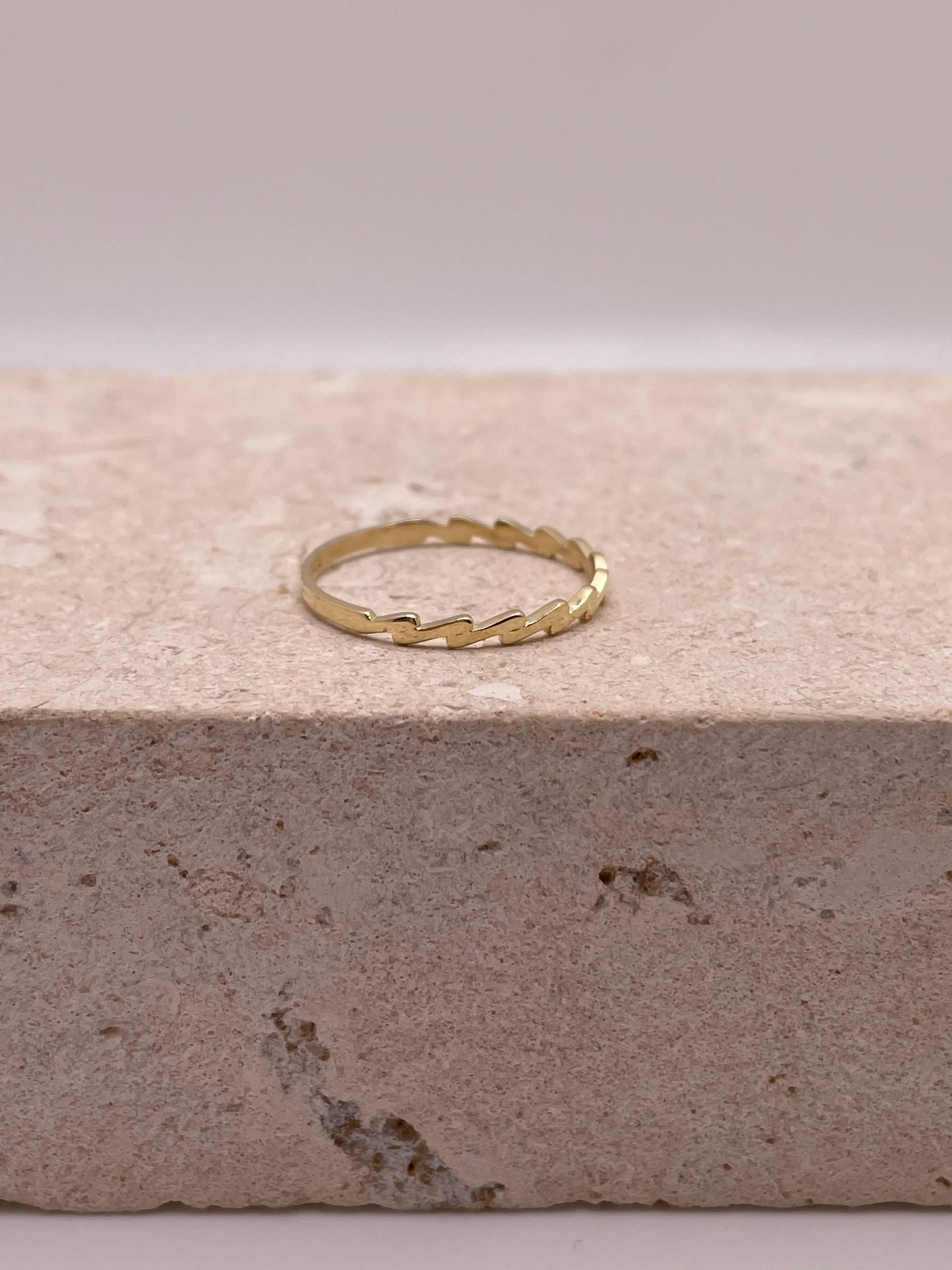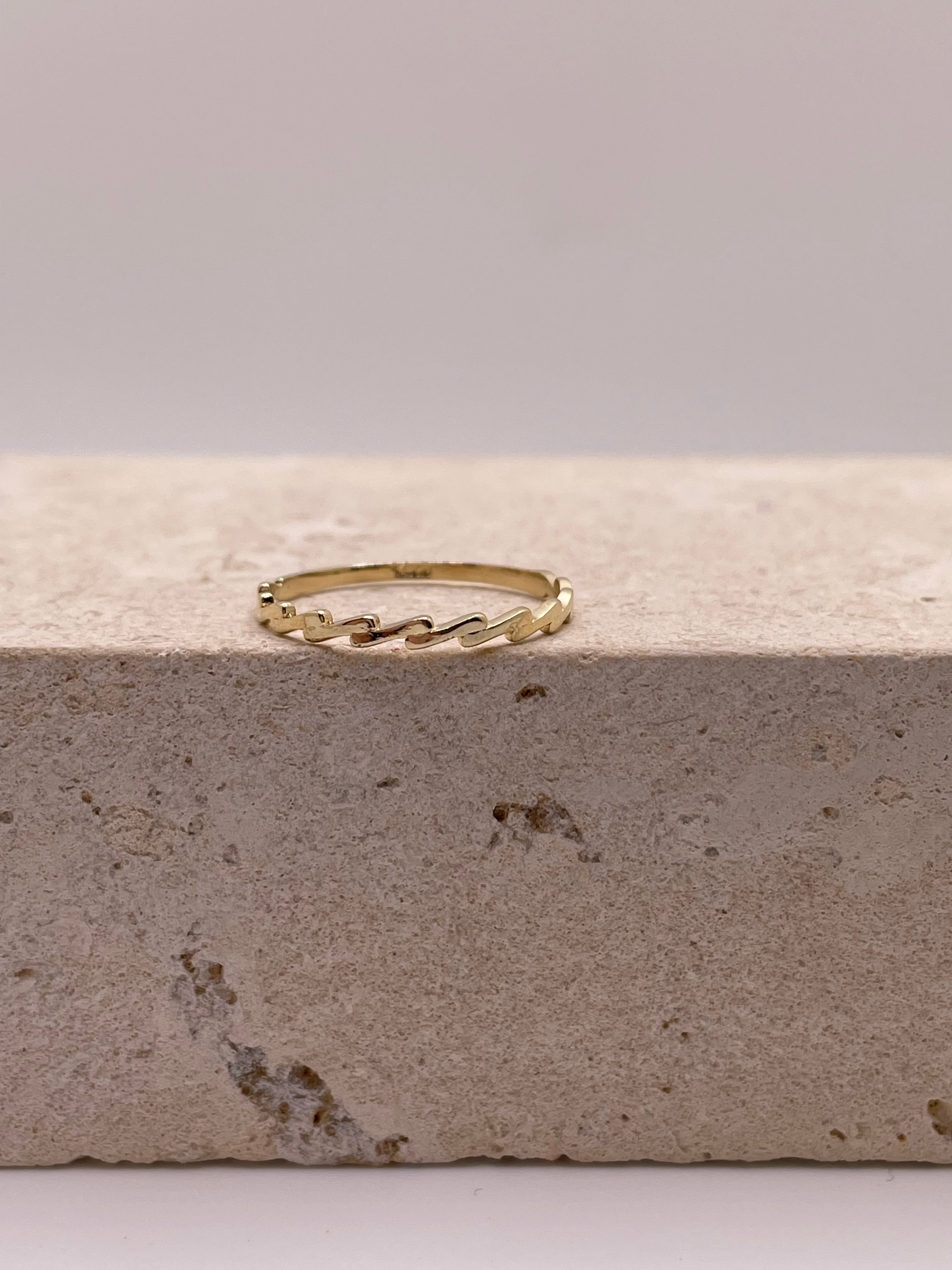 This 14K gold ring features a delicate wavy design, adding a unique and elegant touch to your jewelry collection. Its dainty style makes it perfect as a stackable ring or a chic thumb ring. Designed for effortless everyday wear, this piece is both versatile and timeless.