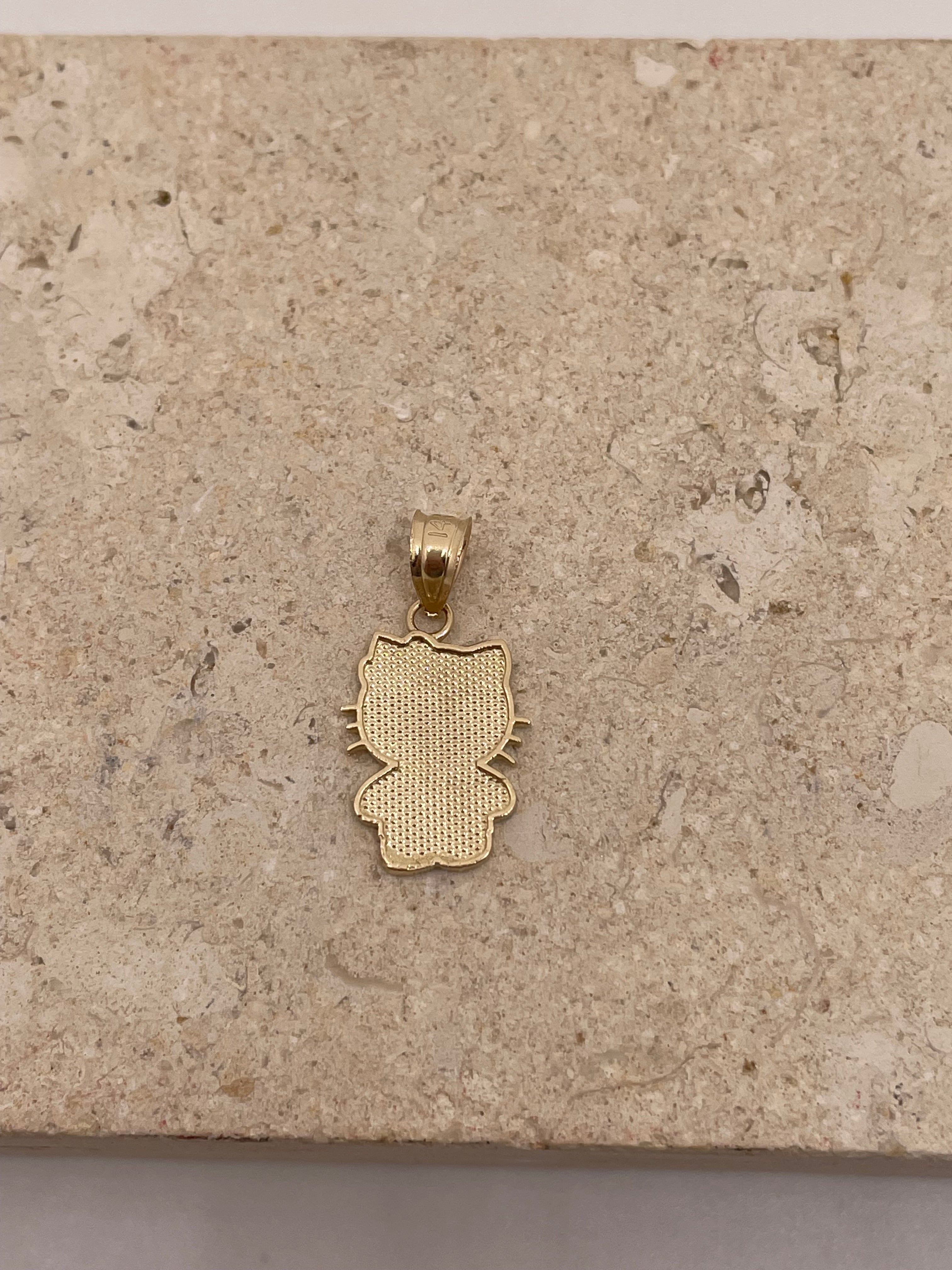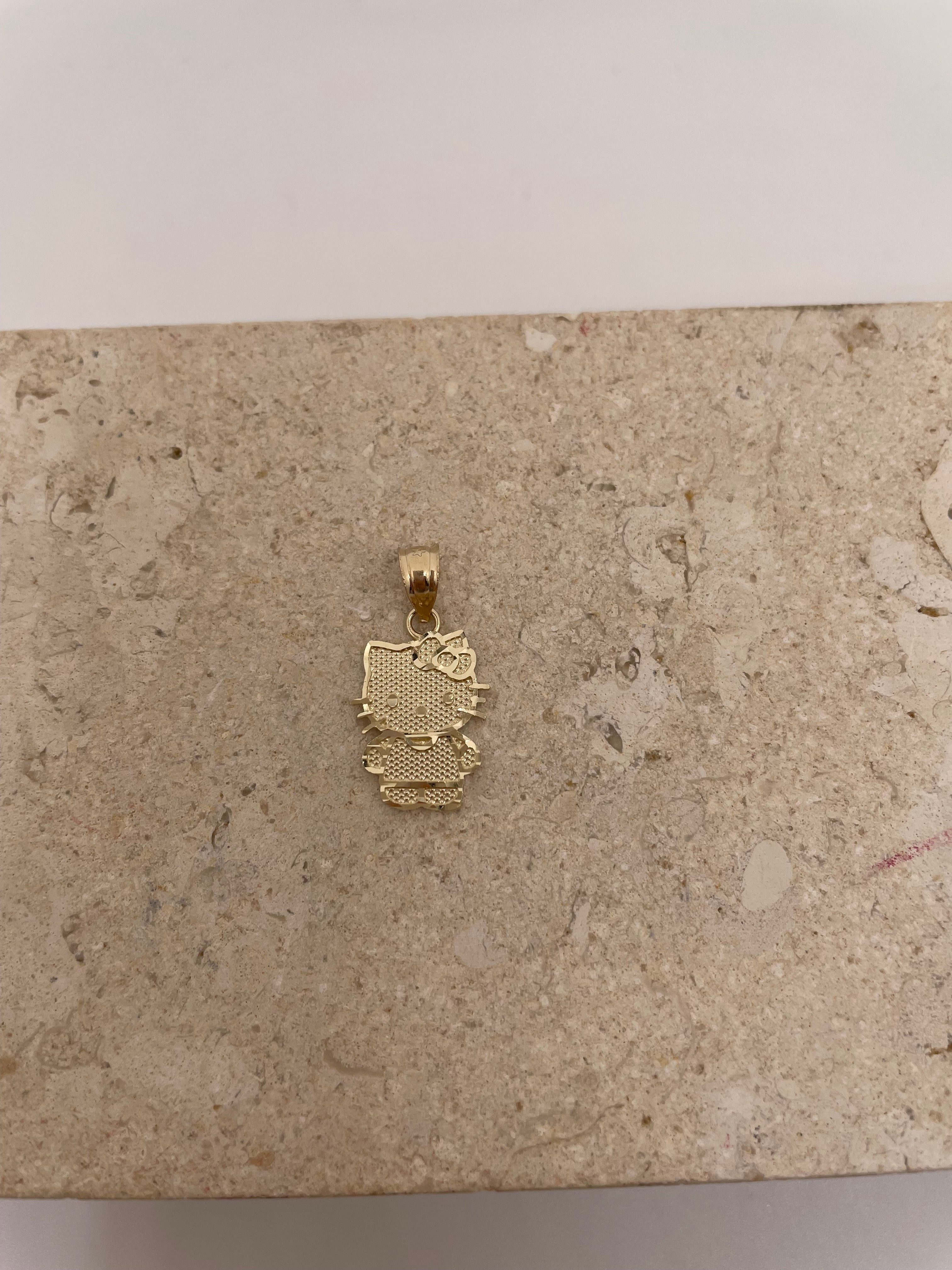 This adorable 14K gold Hello Kitty pendant features her charming face and body in a full gold design, perfect for adding a touch of fun and sparkle to your collection. Measuring approximately 3/4 of an inch, this pendant is a cute and stylish accessory for any Hello Kitty fan.