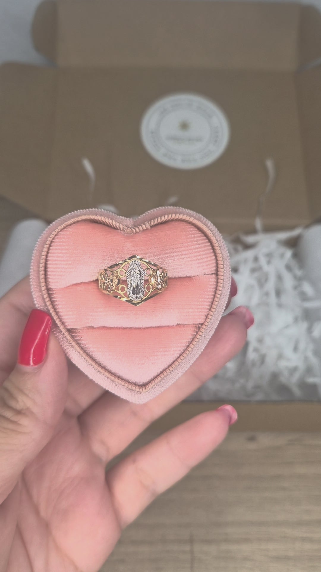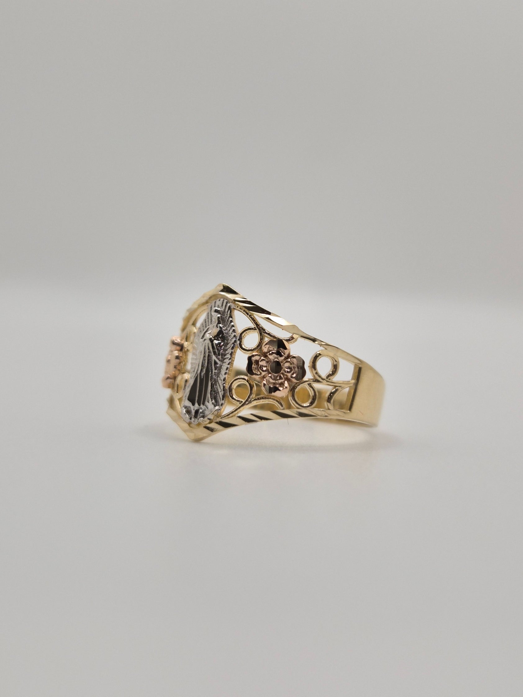 14K Tri-Color Virgencita Guadalupe Floral Ring