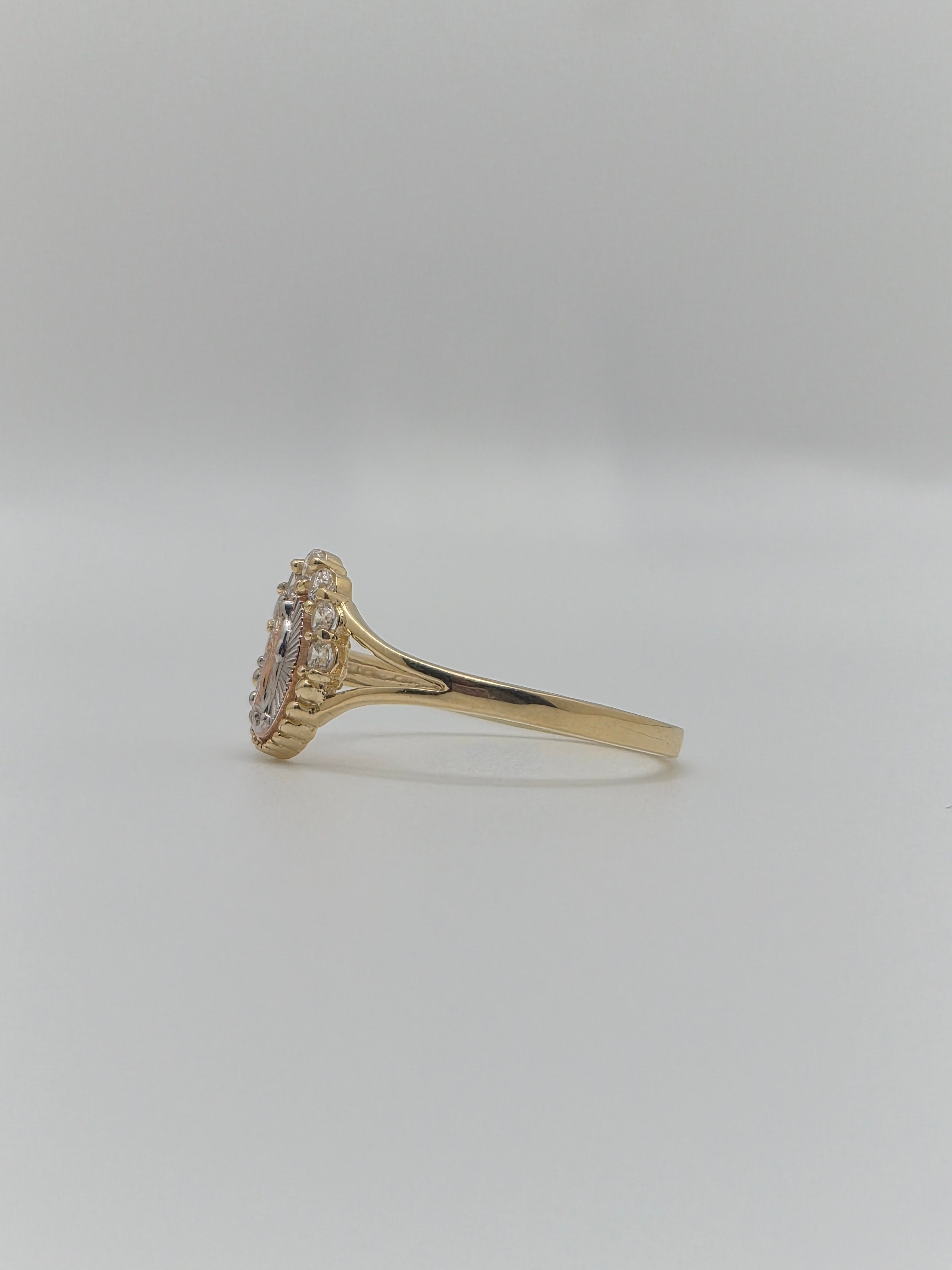 14K Tri-Color Virgencita Guadalupe CZ Ring