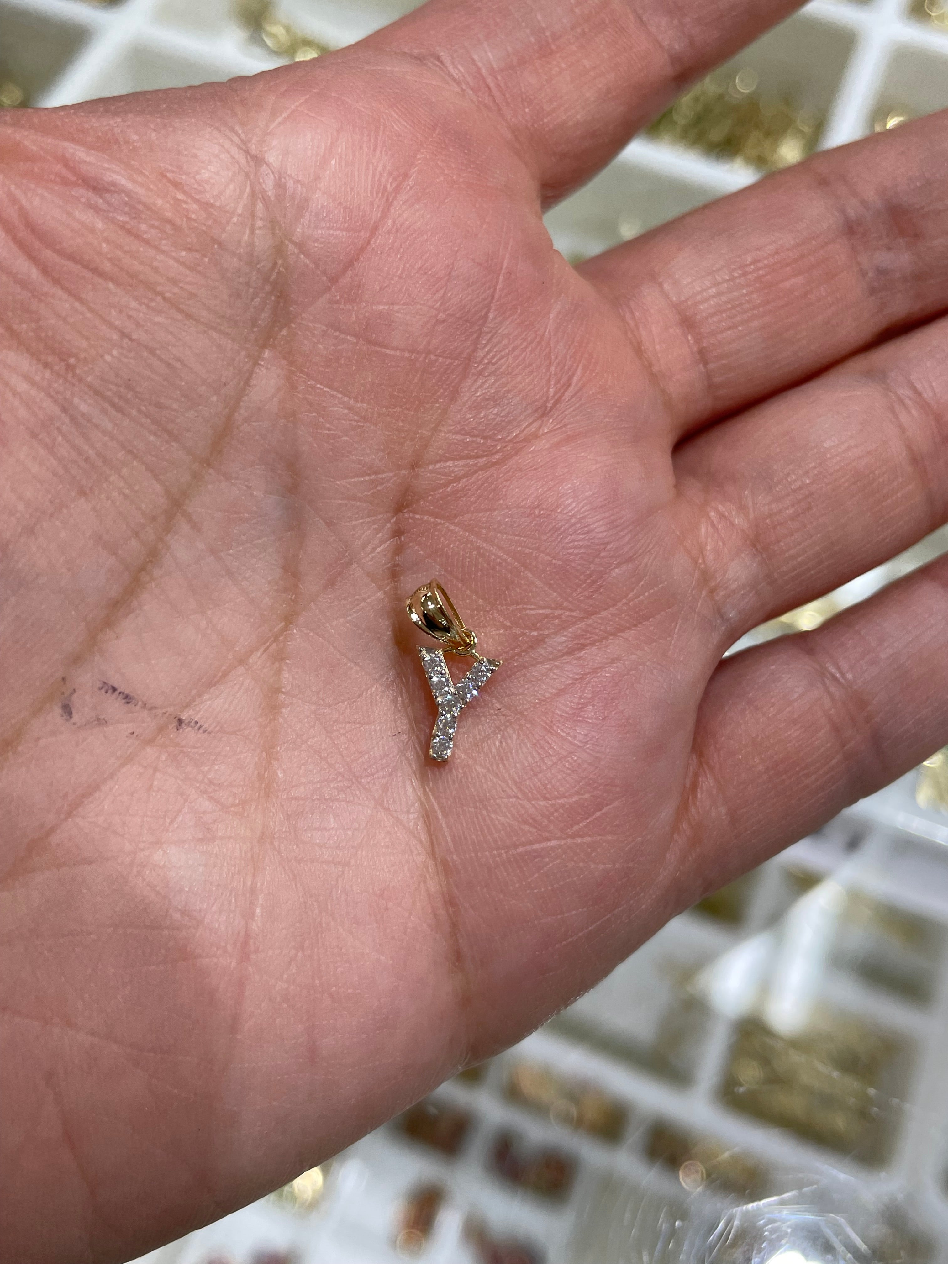 14K Solid Gold Initial Pendant in Yellow Gold with white CZ stones