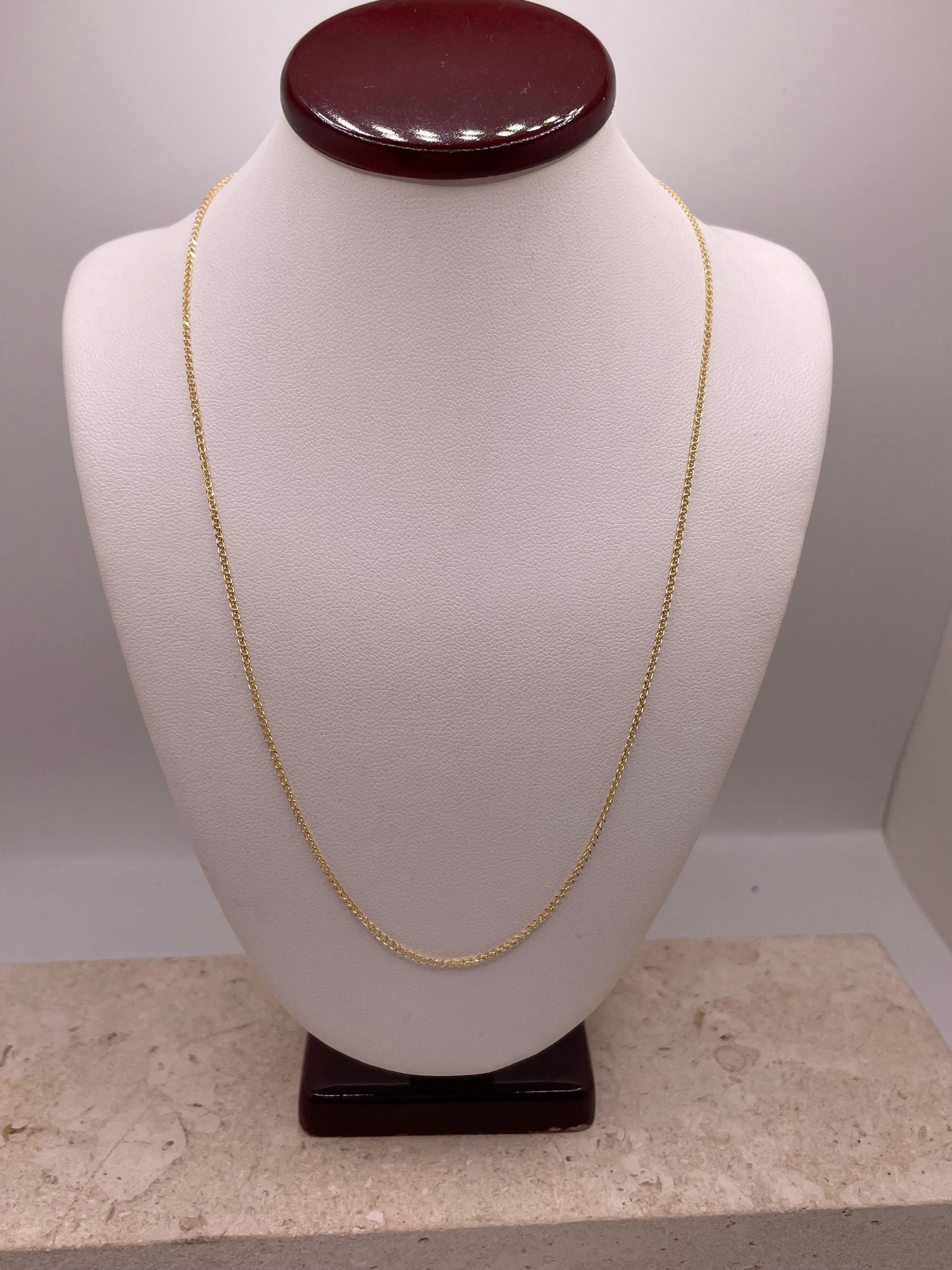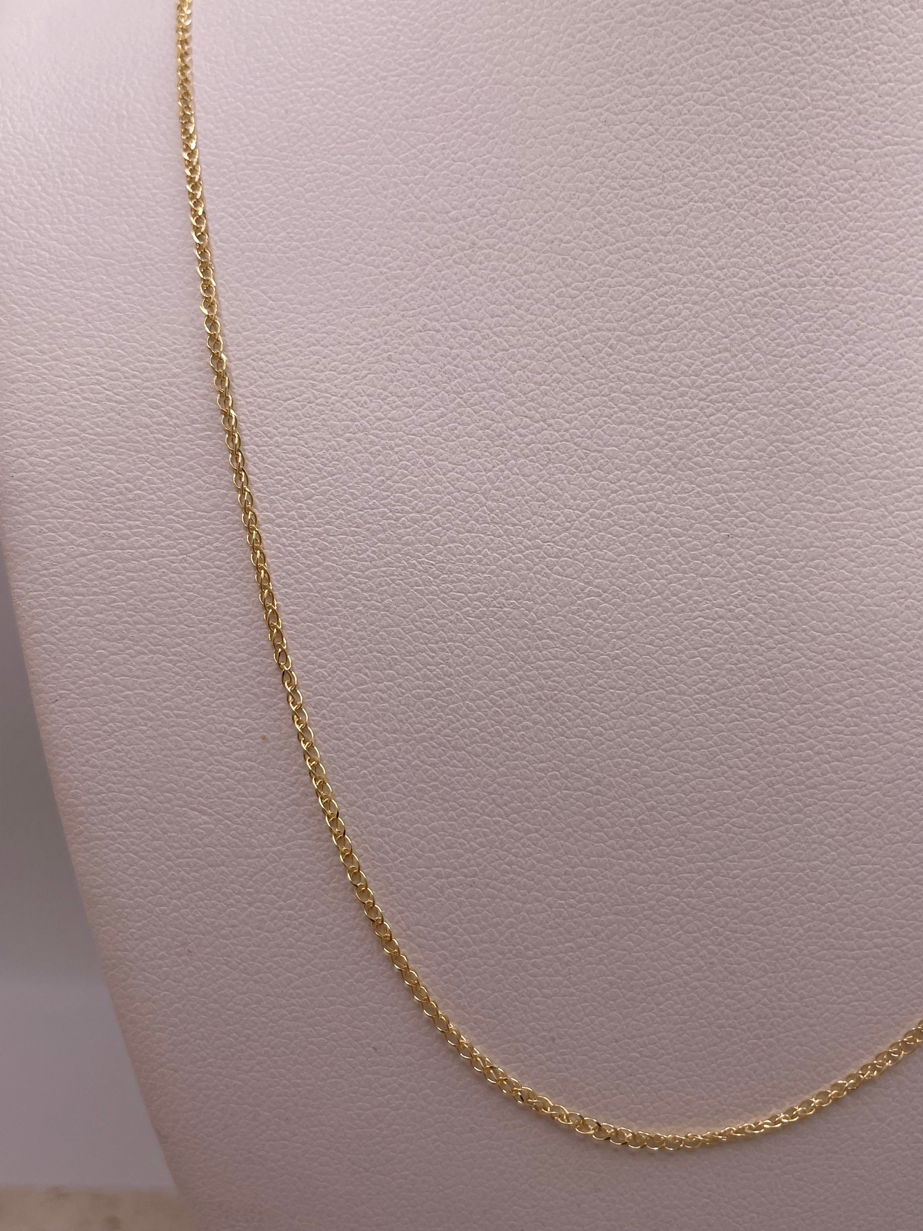 This 14K yellow gold chain features a 1.2mm flat open wheat design, offering a delicate yet durable style perfect for everyday wear or pairing with your favorite pendants. Its timeless design adds a touch of elegance to any outfit, making it a versatile addition to your jewelry collection. Available in multiple lengths to suit your preference.